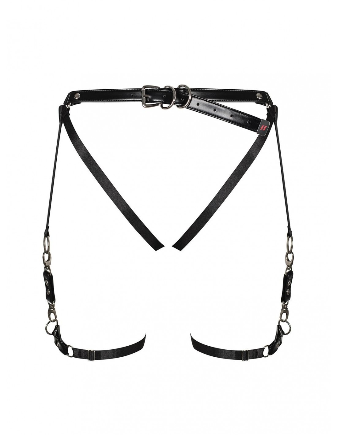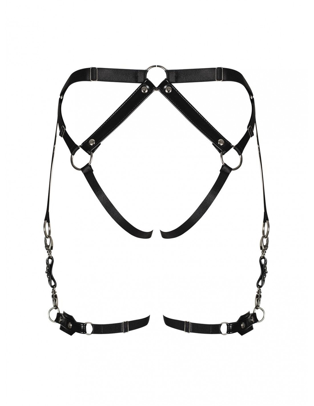 Zapraszamy do świata niegrzecznej rozkoszy z uprzężą A762 od Obsessive. Ta kusząca uprząż została stworzona z fantastycznego, skóropodobnego materiału, który delikatnie połyskuje i muska Twoje ciało. Jej geometryczna kombinacja pasków na pośladkach zmysłowo je uwydatnia, dodając Ci pewności siebie i uwodzenia.