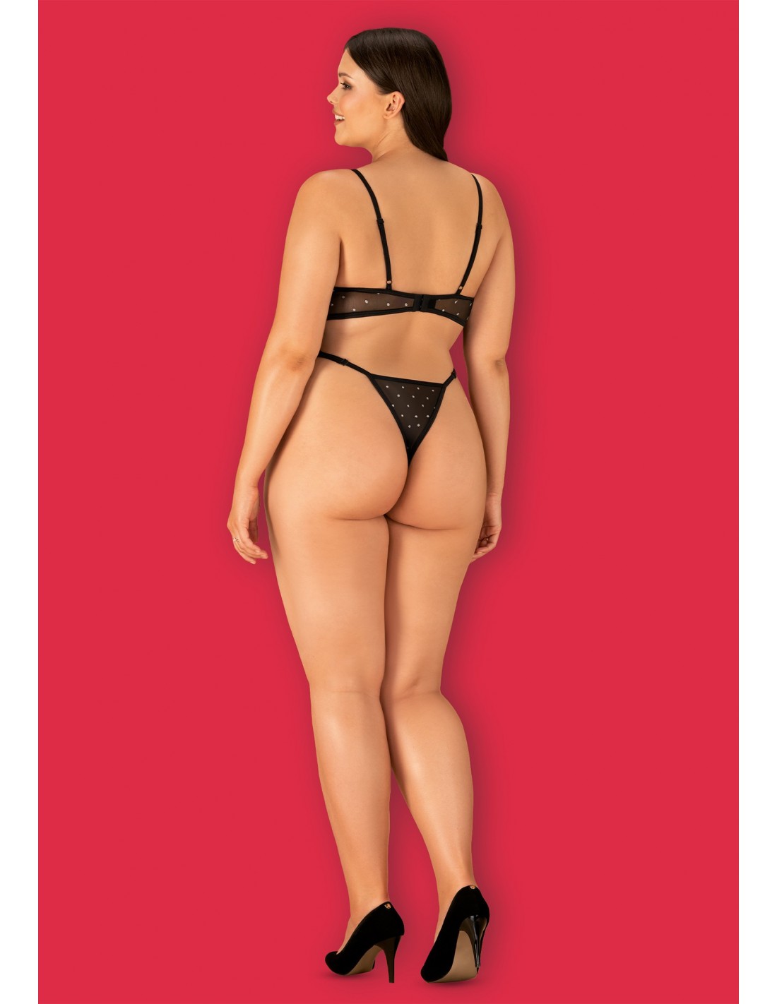 Zapomnij o nudnych wieczorach w sypialni i odkryj nowe możliwości dzięki body Tienesy! Jego wyjątkowy design, z czerwoną kokardą i brokatowymi kropeczkami, sprawi, że poczujesz się jak gwiazda. Regulowane ramiączka i kilkustopniowe zapięcie na plecach zapewnią Ci idealne dopasowanie. Czarne, prześwitujące tkanina odsłoni Twoje kuszące pośladki i plecy, dodając im niezwykłego uroku. Wykonane z miękkiego i elastycznego materiału, body Tienesy zapewni Ci komfort i swobodę ruchów. Przygotuj się na niezapomniane chwile w sypialni dzięki temu wyjątkowemu strojowi!
