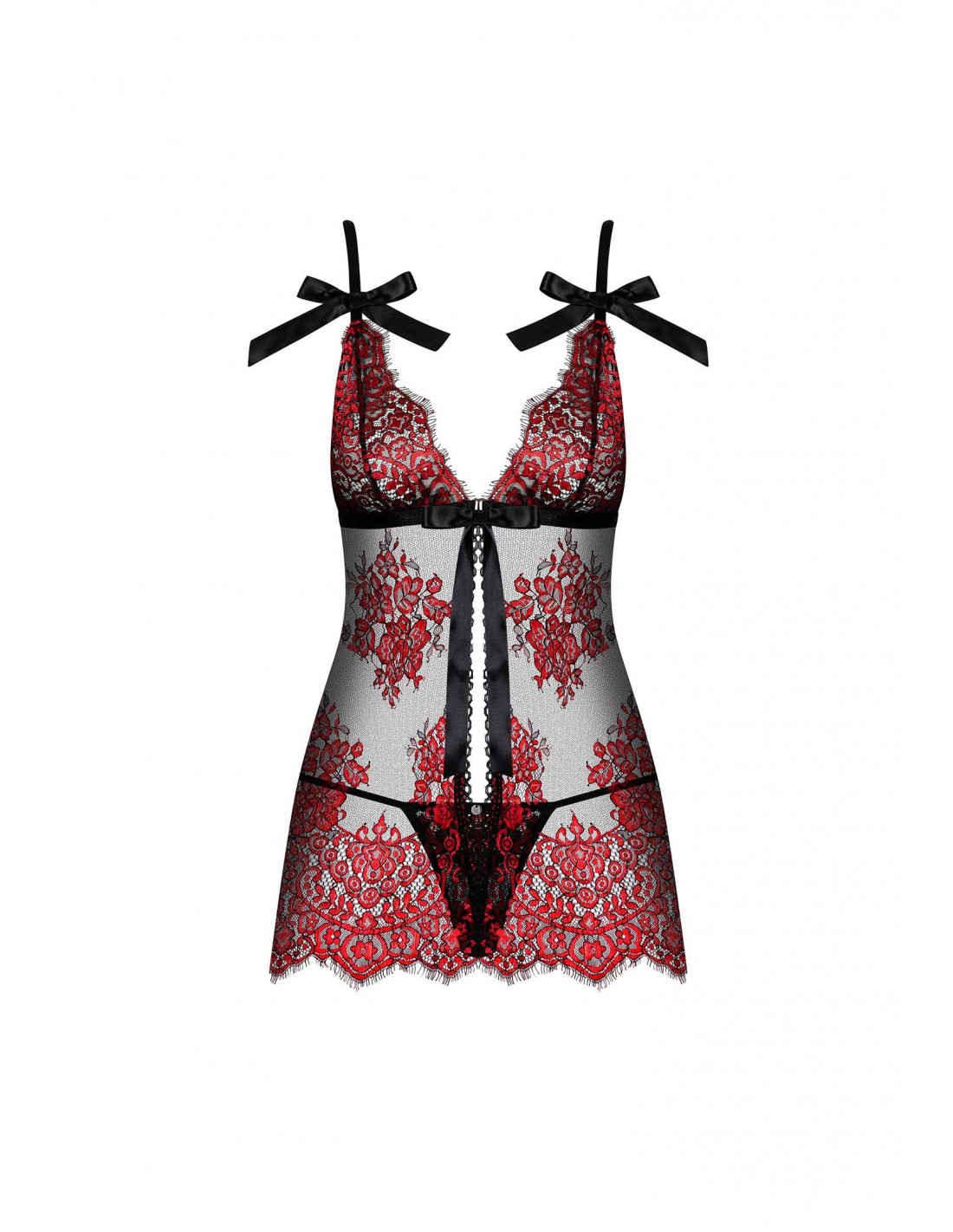 Pod pozorną niewinnością tego babydolla kryją się niezwykle pikantne myśli. Czerwona koronka zdobiąca miseczki oraz kwiatowy wzór tworzący koronkę dodają mu zmysłowości i seksapilu. Rozpinanie z przodu biustu pozwala na szybkie i łatwe zdjęcie babydolla w odpowiednim momencie, aby pokazać swoją prawdziwą naturę.