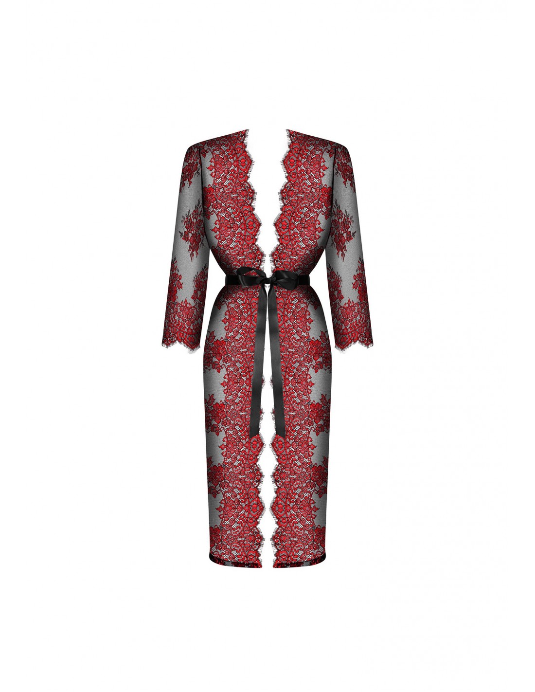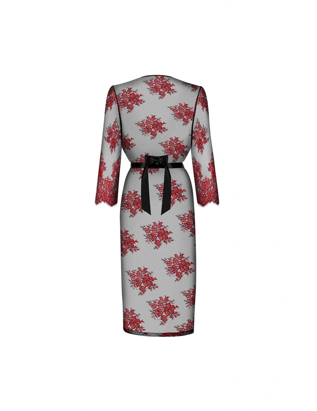 - Delikatny, kwiatowy wzór koronki nadaje peniuarowi subtelności i kobiecego uroku.