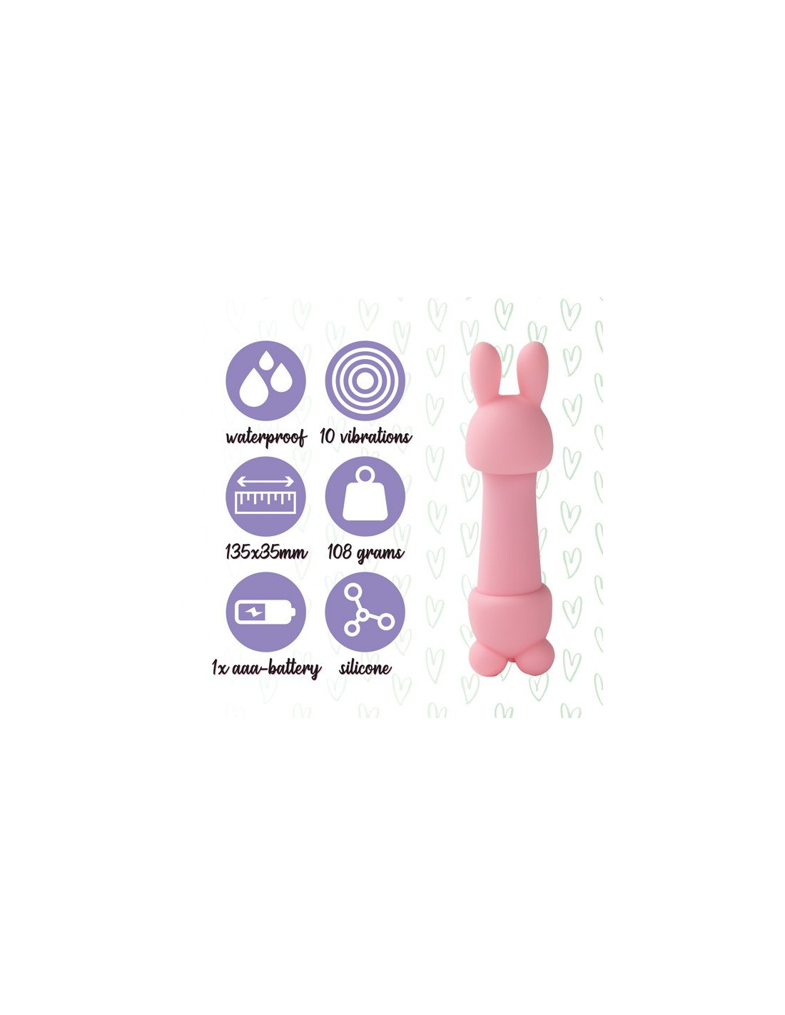 Nasz Wielofunkcyjny Wibrator Królik Mister Bunny Massage Vibrator jest wodoodporny (IPX 7), co oznacza, że możesz go używać pod prysznicem lub w wannie, aby stworzyć jeszcze bardziej namiętną atmosferę. Dodatkowo, jego obsługa jest niezwykle prosta - wystarczy jedna bateria AAA, aby cieszyć się niekończącą się rozkoszą.