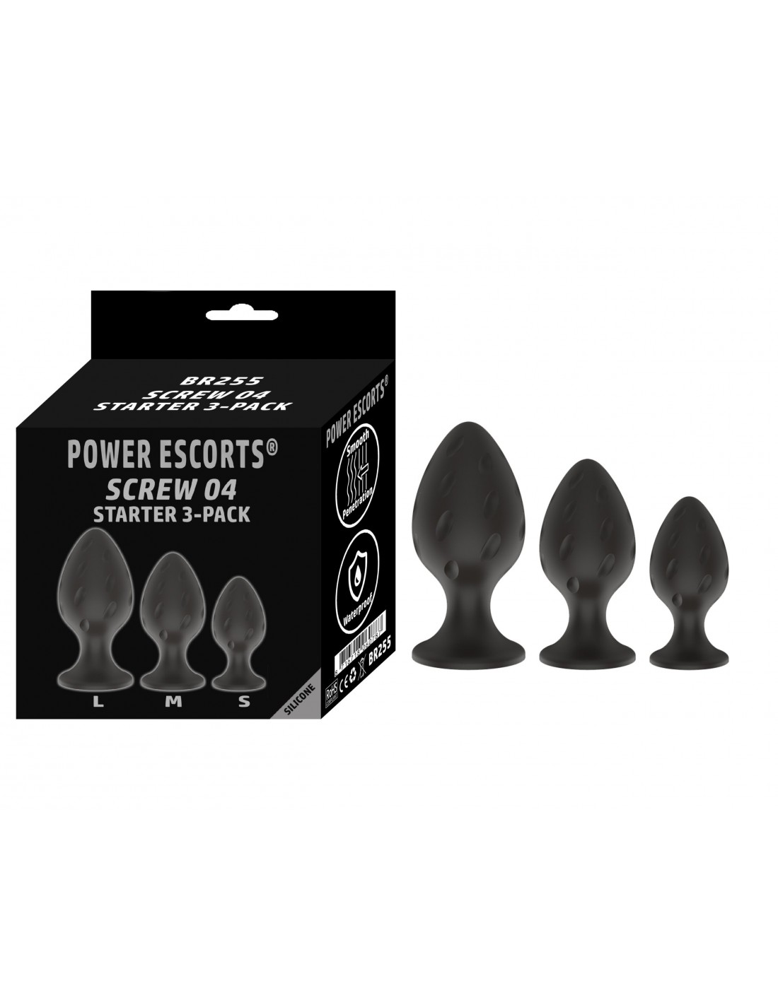 Power EscortsWyraź swoją fantazję z Plug-Screw 04 - 3-Pack Silicone Plugs Black