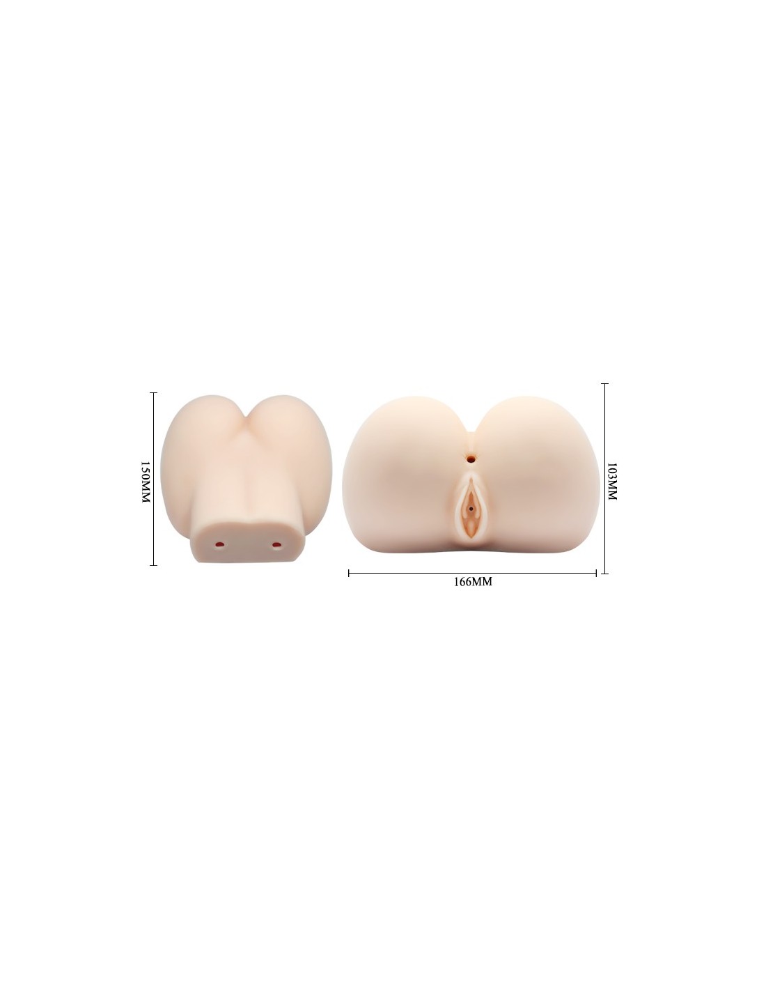 Ten wyjątkowy masturbator posiada dwa otwory - jędrną, prążkowaną pochwę oraz ciaśniejszy tyłek. Teraz możesz samodzielnie zdecydować, której części chcesz się oddać i doświadczyć niezwykłych uniesień. Niezależnie od wyboru, gwarantujemy, że będziesz jeździć na najwyższym biegu aż do niesamowitego punktu kulminacyjnego.