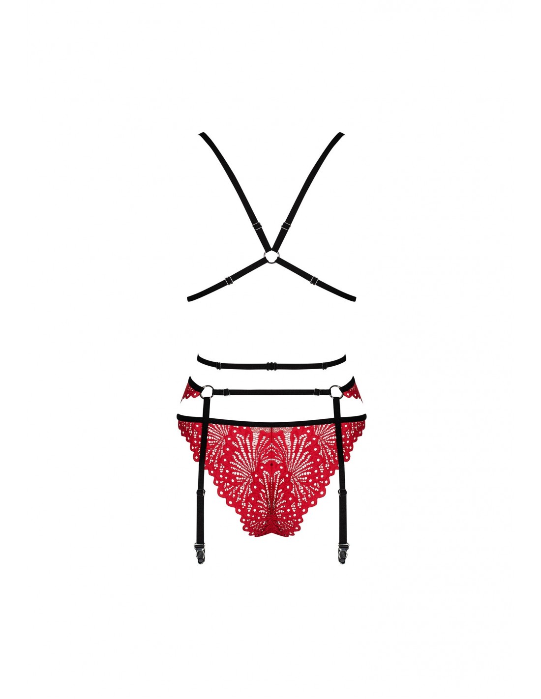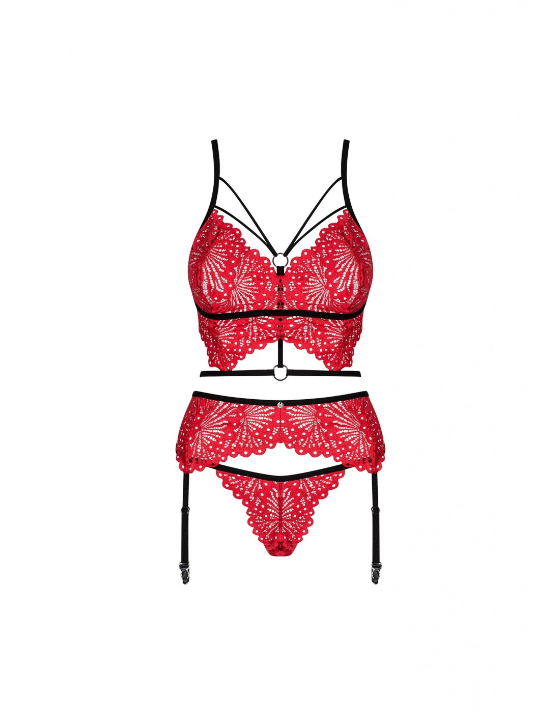 Pragniesz poczuć się wyjątkowo seksownie i uwodzicielsko? Komplet Mettia jest idealnym wyborem dla Ciebie! Zawiera biustonosz, majteczki i pas do pończoch - wszystko, czego potrzebujesz, aby stworzyć niezapomniany look.