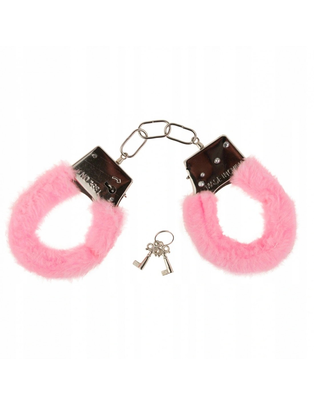 - Wykonane z trwałego metalu, otulone miękkim futerkiem w różowym kolorze