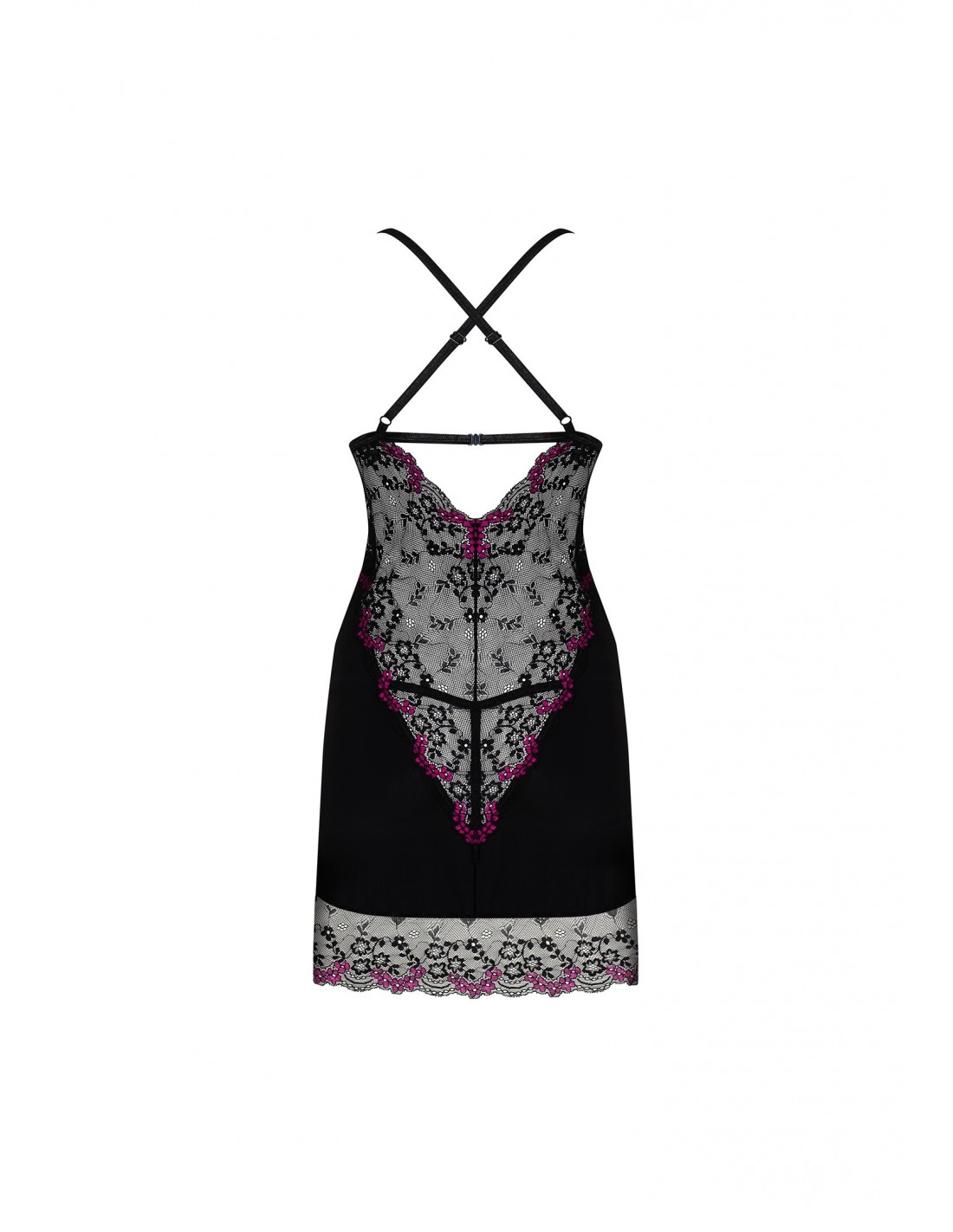 Zapomnij o nudnych i nieatrakcyjnych koszulkach nocnych. Czarna koszulka i string Vanessme to idealne połączenie subtelnej kobiecości z wysmakowaną pikanterią. Zalotne detale w postaci koronkowych wstawek i kuszące wycięcie na plecach sprawią, że poczujesz się w niej mega seksownie, ale także wygodnie.