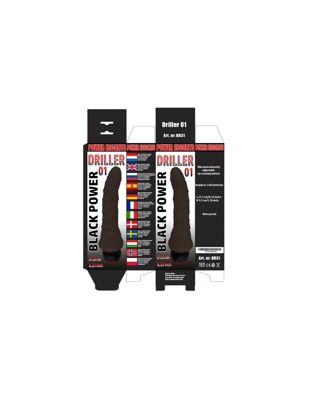 Power EscortsUltra-realisticzny wibrator Driller 01 Czarny 21,5 cm - intensywna przyjemność na wyciągnięcie ręki!