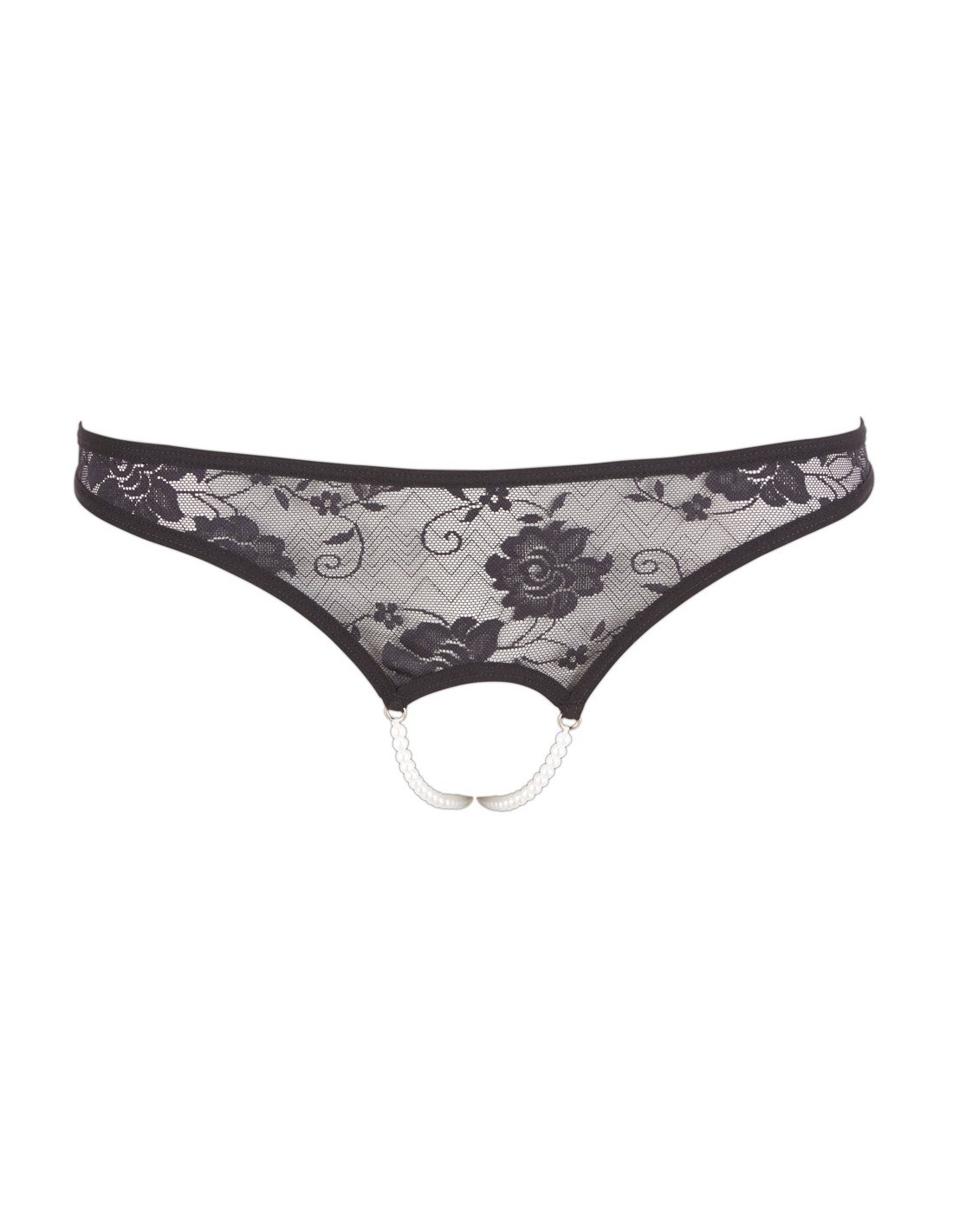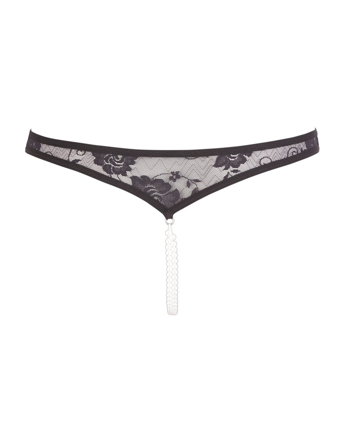 Wyjątkowy i uwodzicielski Lace String Pearls black S