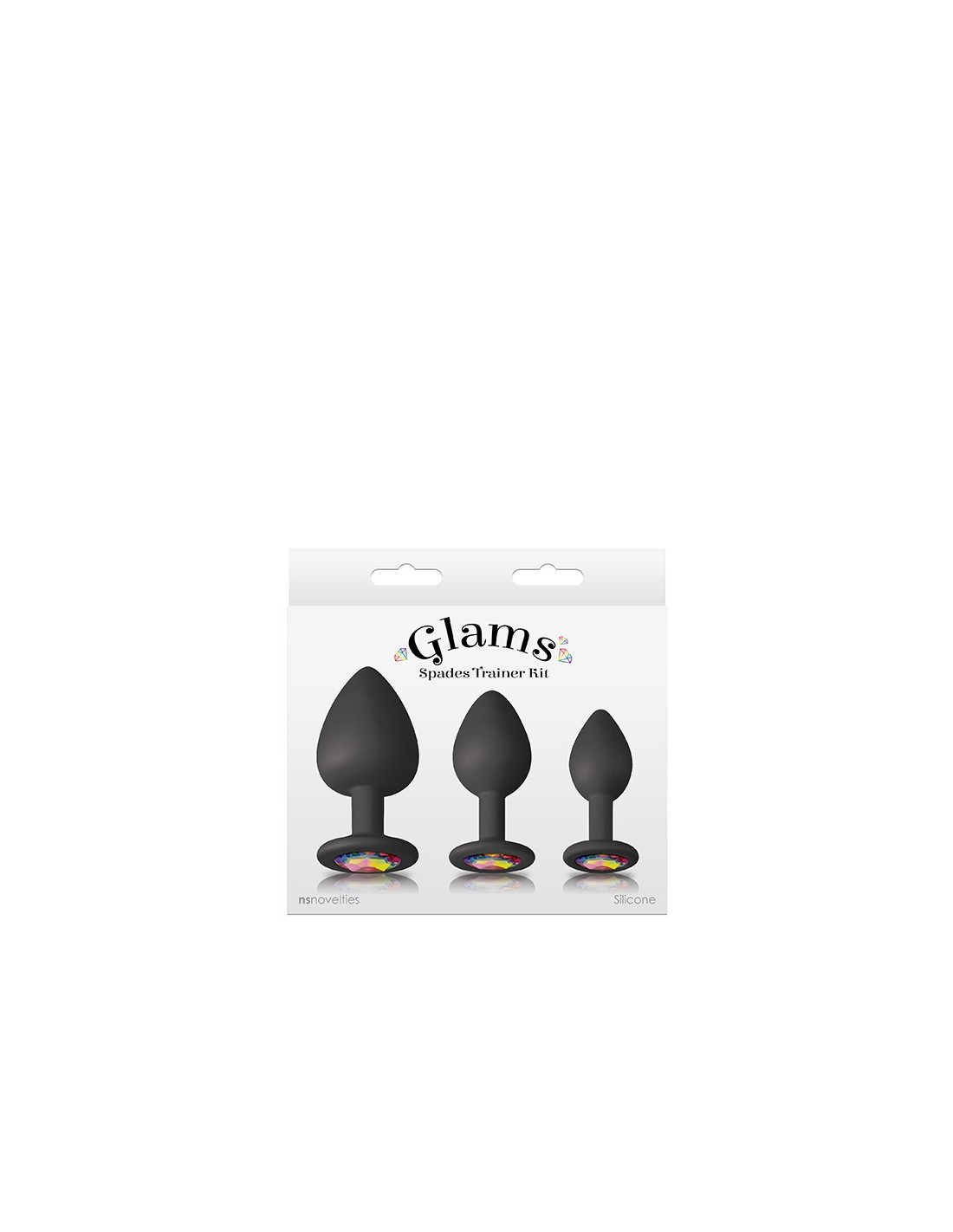 GLAMS SPADES TRAINER KIT BLACK wyróżnia się nie tylko doskonałym wykonaniem, ale także pięknymi ozdobami. Każdy korek został ozdobiony błyszczącym tęczowym klejnotem, który dodaje mu niezwykłego blasku i elegancji. To nie tylko praktyczny gadżet, ale również wyjątkowy element biżuterii, który pozwoli Ci poczuć się wyjątkowo i seksownie.