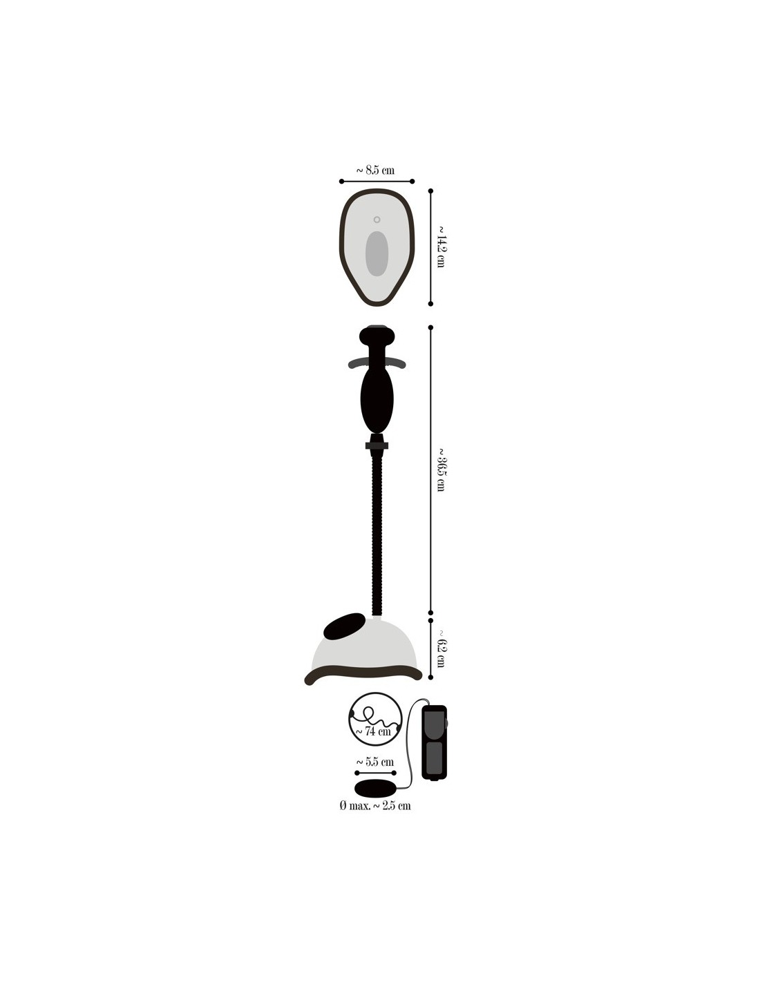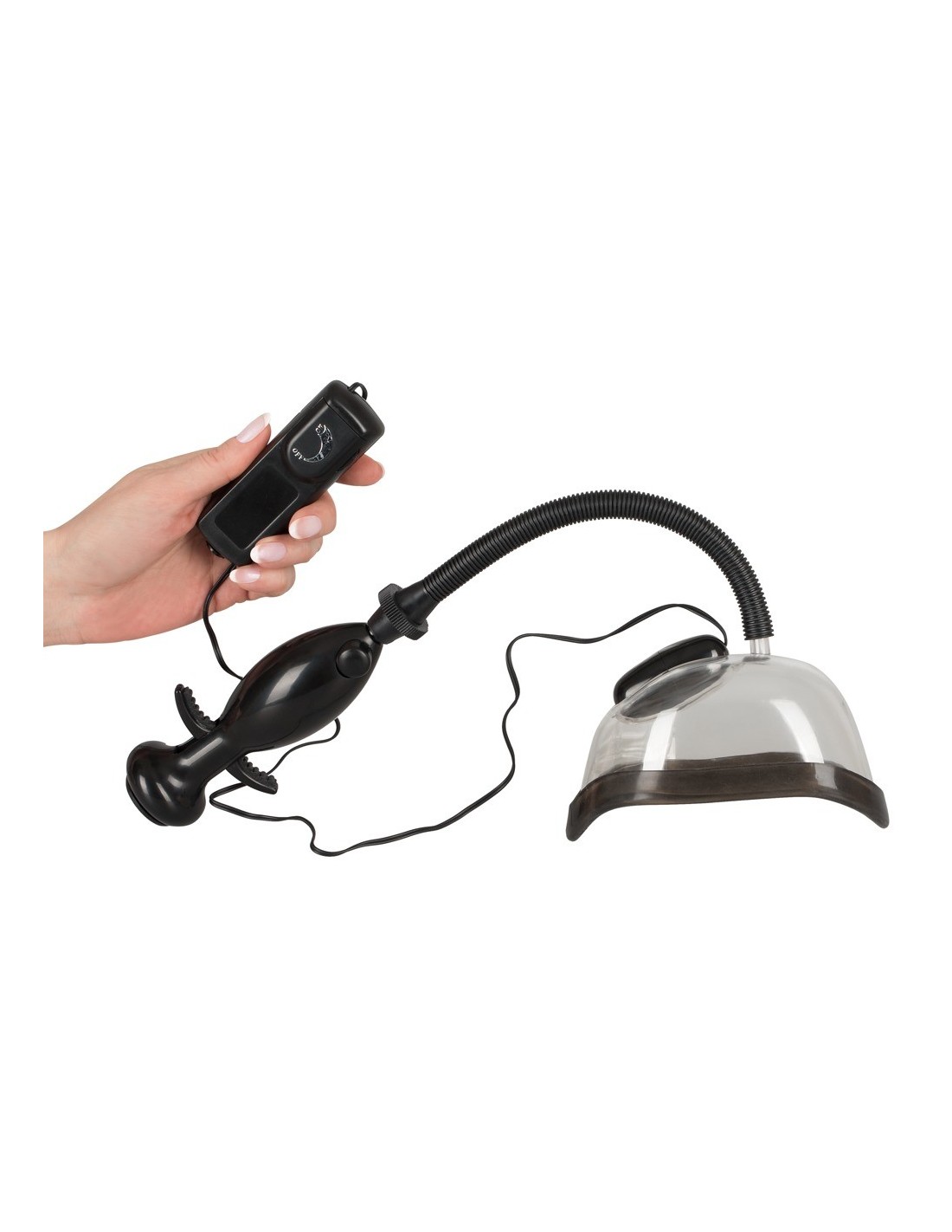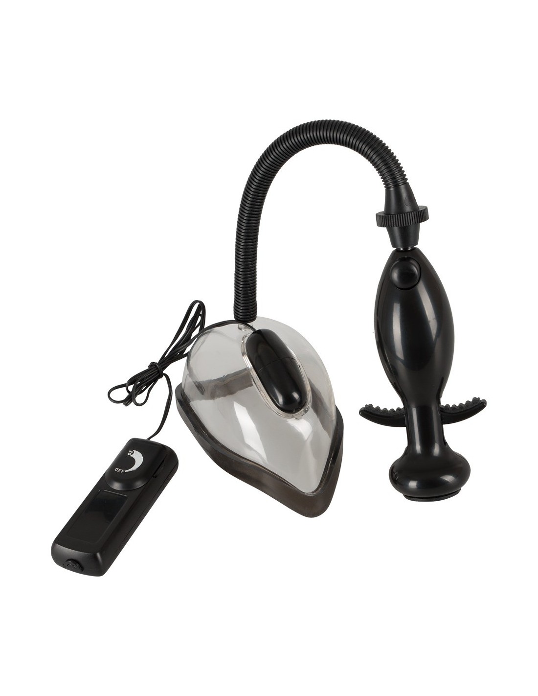 Anatomiczna przyssawka dopochwy ze zdejmowaną wibro-kulą i łatwym do uchwycenia uchwytem. Zmienne drgania mogą być kontrolowane za pomocą pilota zdalnego sterowania na przewodzie. Istnieje również zawór wylotowy.