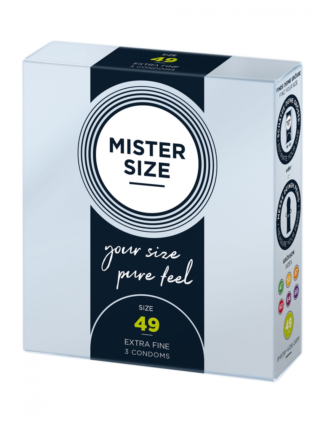 MISTER SIZE 49mm Condoms 3pcs są dostępne w praktycznym opakowaniu, które możesz z łatwością schować do kieszeni lub portfela. Dzięki temu zawsze będziesz miał je pod ręką, gdy będziesz ich potrzebować. Nie musisz się martwić o nieoczekiwane sytuacje - MISTER SIZE jest zawsze gotowy na akcję!