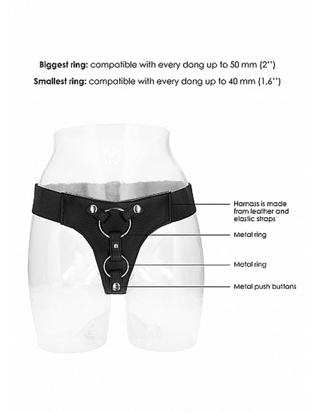 Metalowe akcenty dodają temu uprzężowi odrobinę ostrości i skojarzeń związanych z BDSM. Ale to nie wszystko. Ten unikalny produkt jest wyposażony w dwa metalowe pierścienie, które umożliwiają łatwe podpięcie jednego lub dwóch dildo. Pierścienie mają średnice odpowiednio 5 cm i 4 cm, co oznacza, że możesz podpiąć zarówno dilda waginalnego, jak i analnego. Wybór należy do Ciebie, a rozkosz jest podwójna.