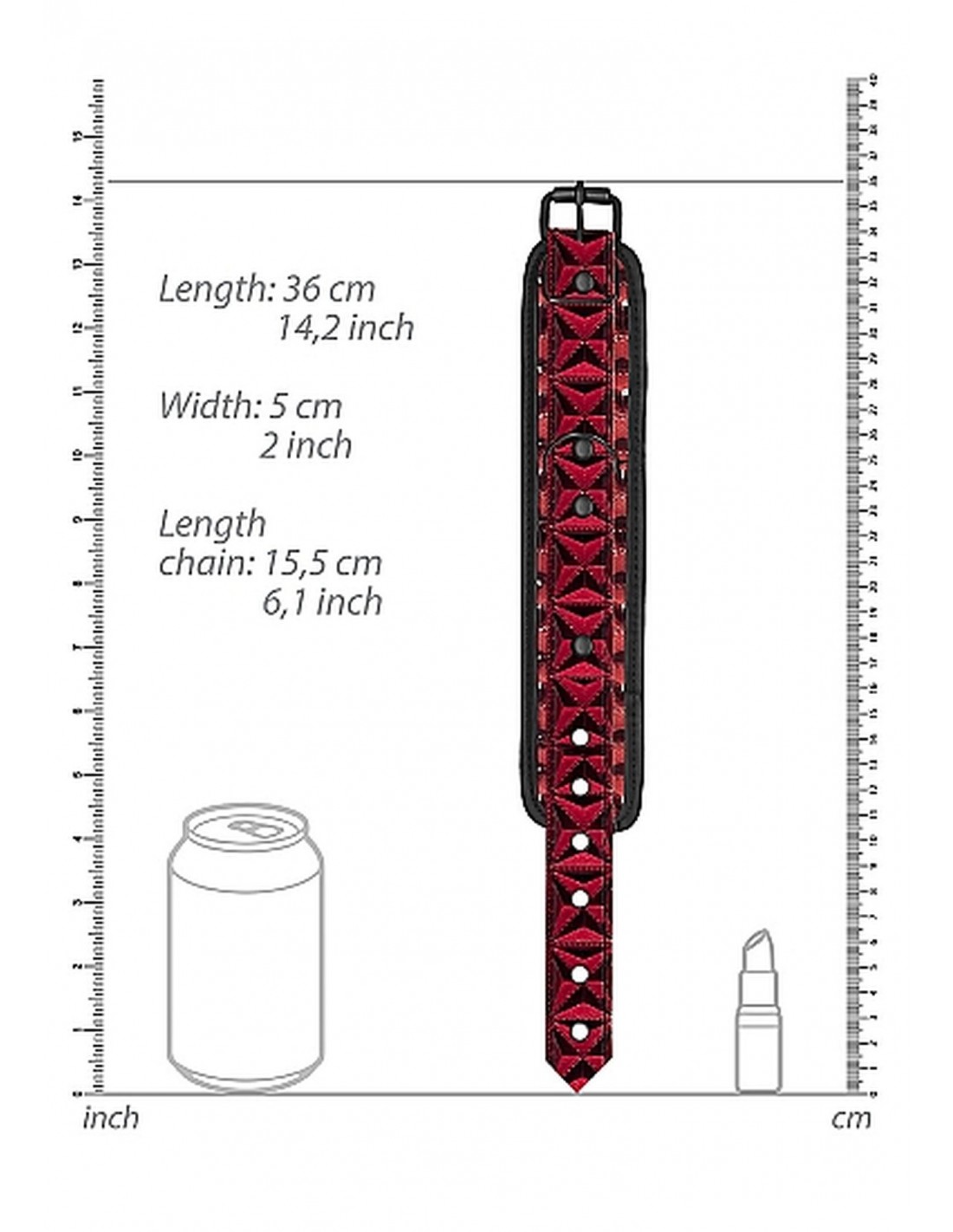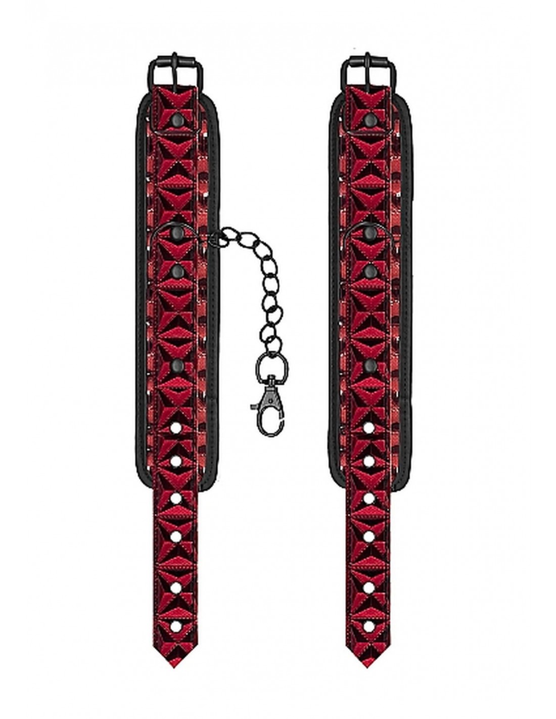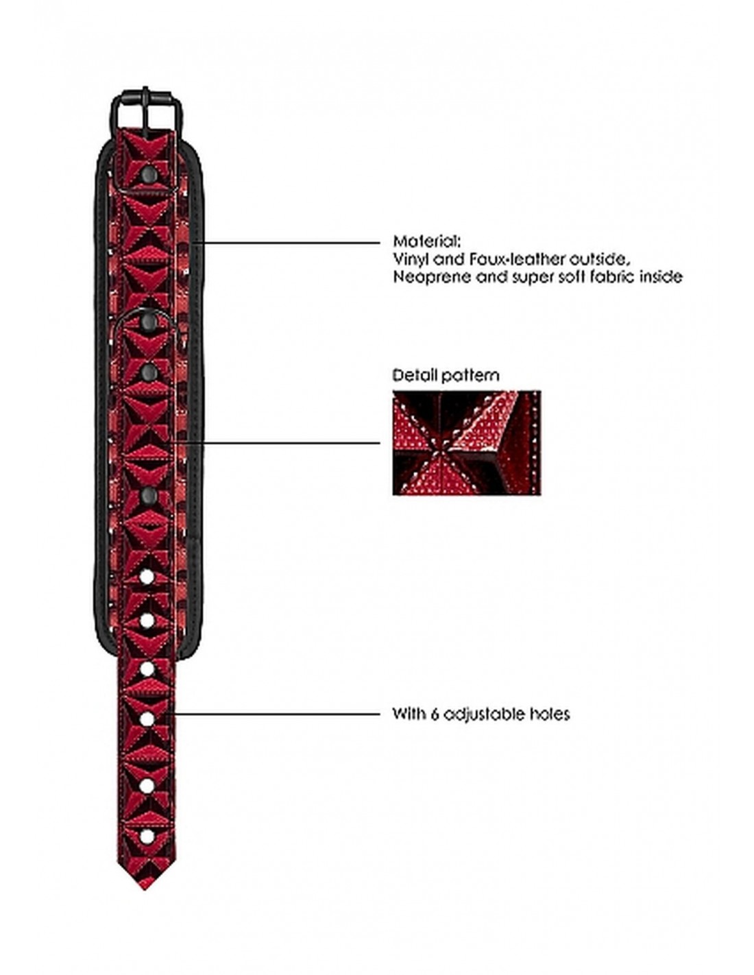 Zwyciężaj w stylu dzięki modnemu wzorowi w diamenty, który ozdabia te kajdanki. Ich burgundowy kolor dodaje im elegancji i sprawia, że są atrakcyjnym dodatkiem do Twojej kolekcji BDSM. Nie tylko zapewniają intensywne doznania, ale także świetnie wyglądają.
