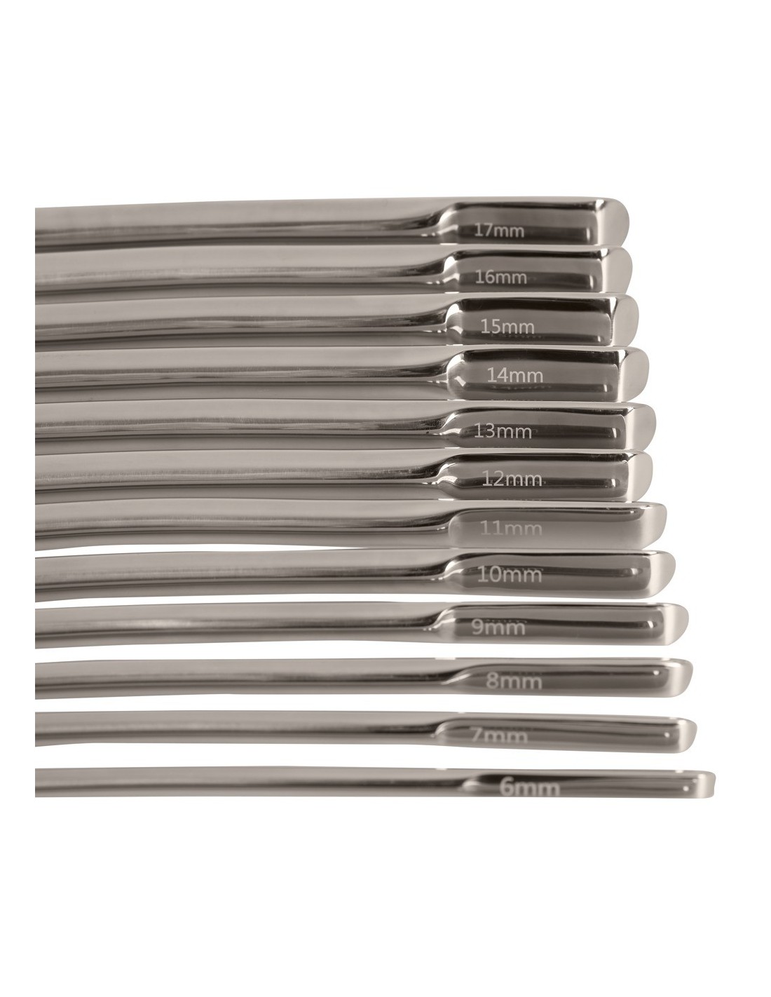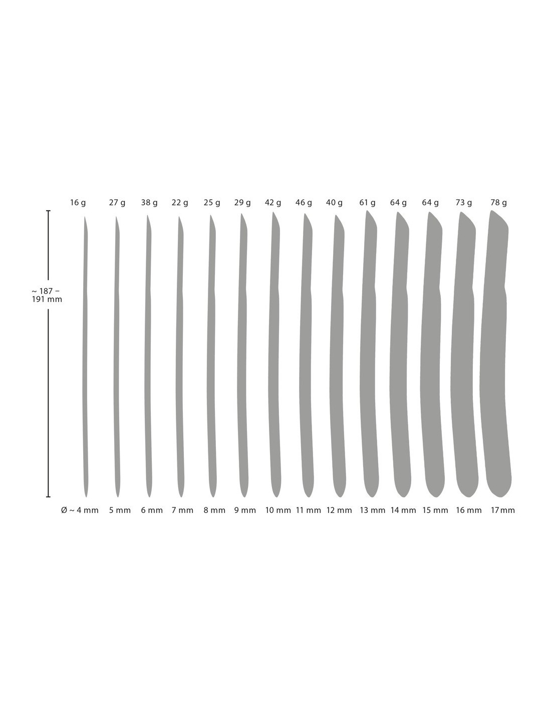 Zestaw PPlug Dilator Set oferuje szeroki wybór rozmiarów, abyś mógł znaleźć idealne dopasowanie do swoich indywidualnych preferencji. Długość całkowita rozszerzaczy wynosi od 18,7 cm do 19,1 cm, a długość wkładki to od 13,4 cm do 13,7 cm. Każdy rozszerzacz ma inny rozmiar, zaczynając od 4 mm i sięgając aż do 17 mm, co pozwala na stopniowe rozszerzanie i eksplorowanie nowych granic przyjemności.