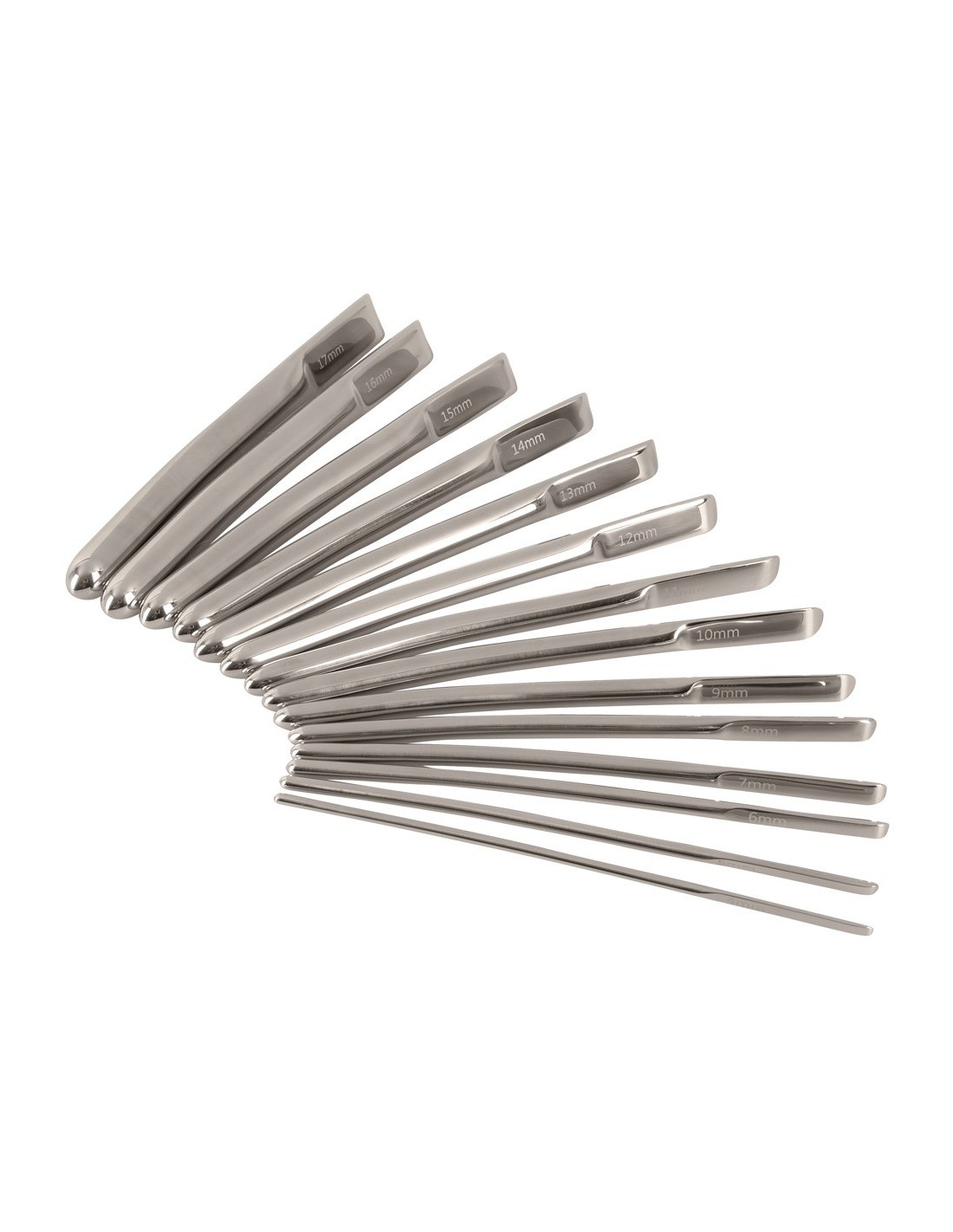 Nasz zestaw rozszerzający został tak zaprojektowany, aby zapewnić Ci maksymalny komfort i bezpieczeństwo. Każdy rozszerzacz ma zaokrągloną końcówkę, która ułatwia jego wkładanie, oraz spłaszczony uchwyt, dzięki któremu łatwo go trzymać. Dodatkowo, wszystkie rozszerzacze są bezszwowe, gładkie i polerowane, co sprawia, że ich noszenie jest jeszcze bardziej przyjemne.