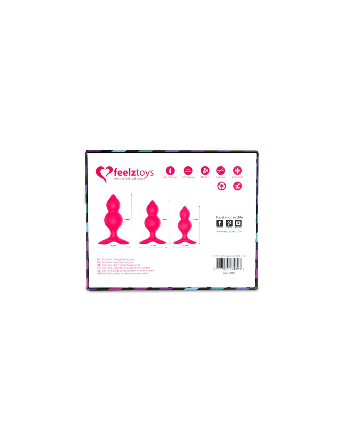 Feelztoys Bibi Twin to zestaw trzech korków analnych, które są miękkie, elastyczne i łatwe do wkładania. Dzięki różnym rozmiarom, możesz stopniowo przyzwyczajać się do większych zatyczek, odkrywając nowe poziomy przyjemności. Głowica stożkowa ułatwia wkładanie, a rozszerzona podstawa zapewnia większe bezpieczeństwo i przyczepność podczas użytkowania.