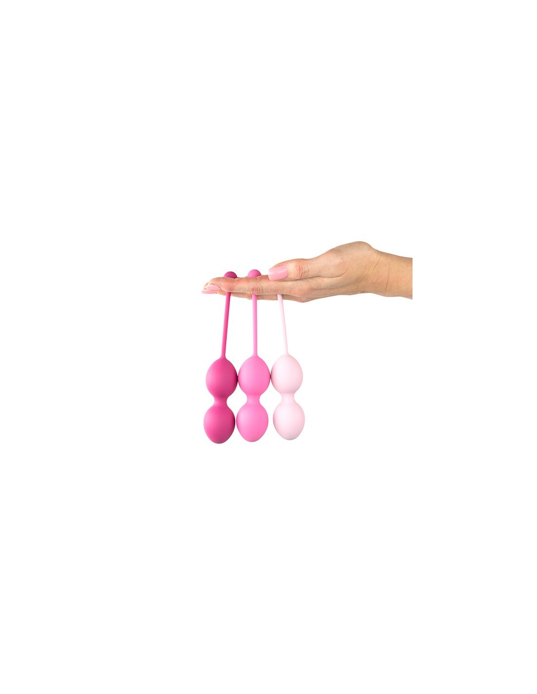 W skład zestawu wchodzą kulki o różnej gramaturze - 125g, 165g i 200g. Najlżejsze ciężarki posiadają wewnątrz toczące się kulki, które automatycznie pobudzają mięśnie dna miednicy podczas noszenia. Dzięki temu trening jest jeszcze bardziej efektywny i daje szybsze rezultaty. Wszystkie kulki wykonane są z miękkiego i bezpiecznego dla ciała silikonu, który jest wodoodporny i nieporowaty, co ułatwia ich czyszczenie.
