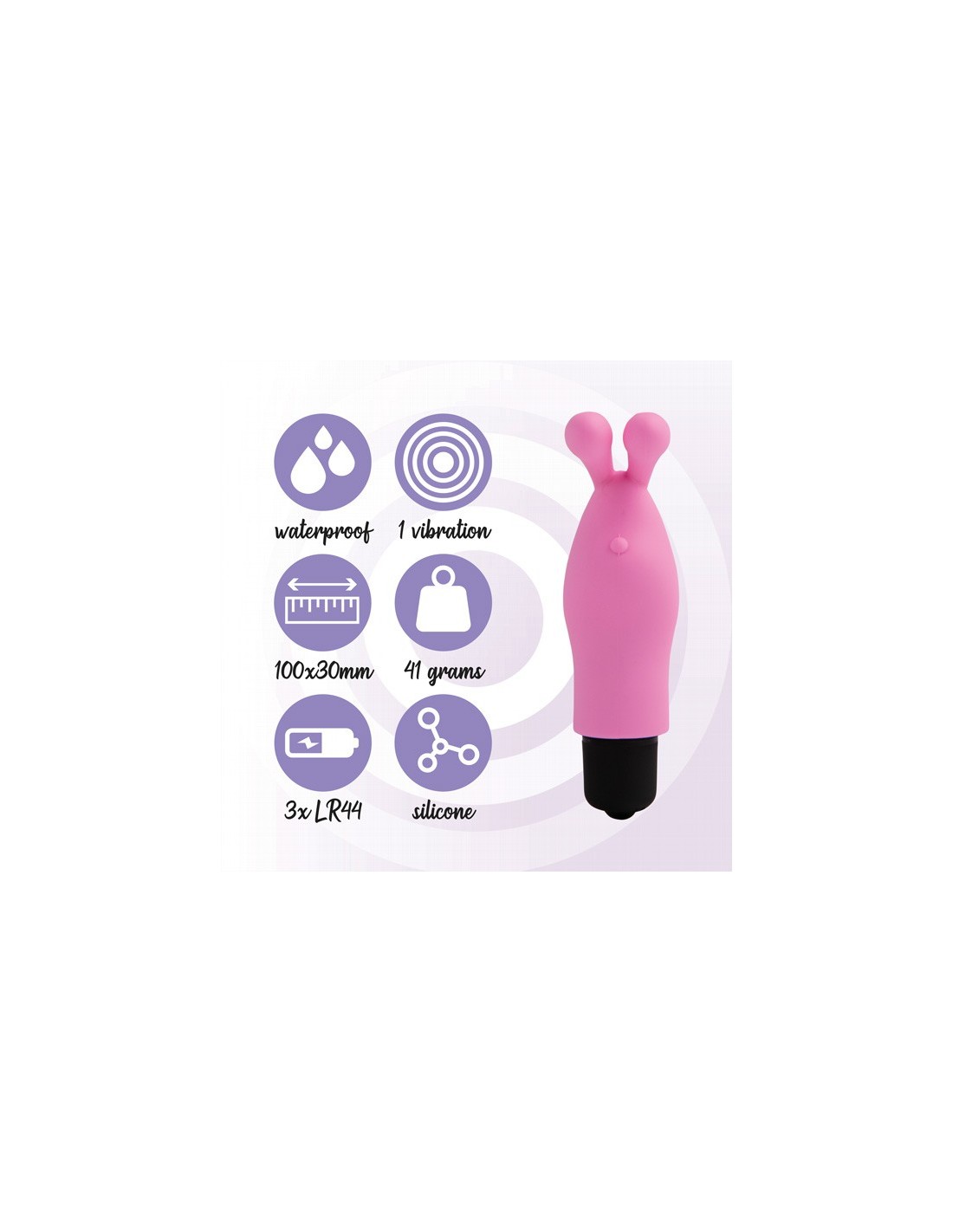 Ten wibrator palcowy jest wyposażony w osobny pocisk, zasilany bateriami, co oznacza, że zawsze możesz cieszyć się niegrzecznymi przyjemnościami bez konieczności podłączania do prądu. Uszy króliczka wibrują, dzięki czemu cała zabawka może być wykorzystana do drażnienia i podniecenia. Prosta obsługa - wystarczy włączyć i wyłączyć, aby od razu poczuć falę rozkoszy.