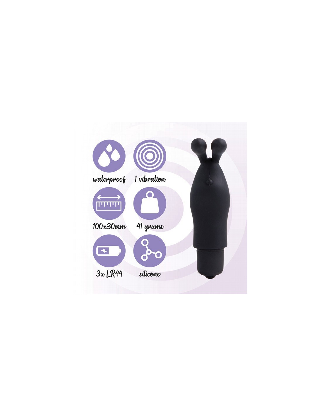 Magic Finger Vibrator Czarny to nie tylko wibrator na palcu. Zabawka ta posiada osobny pocisk, który działa na baterie, co oznacza, że możesz cieszyć się jej niegrzecznymi wibracjami bez konieczności podłączania do prądu. Uszy królika wibrują przyjemnie, umożliwiając Ci drażnienie i podniecenie w każdym momencie.