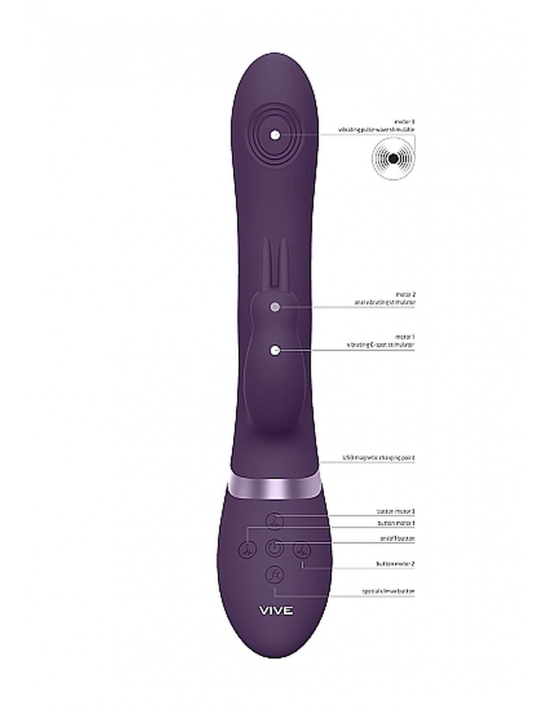 Rini jest wyposażony w akumulator litowo-jonowy, który można ładować za pomocą magnetycznego kabla USB. Po zaledwie 180 minutach ładowania, możesz cieszyć się niezapomnianymi zabawami przez 40 minut. Gdy zbliżasz się do szczytu rozkoszy, po prostu naciśnij przycisk szczytowania, aby włączyć wszystkie silniki na pełną moc i prędkość. Przygotuj się na orgazm, który zwala z nóg.