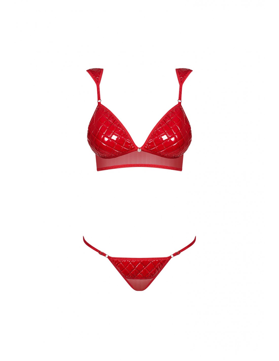 Komplet Hunteria to nie tylko seksowny design, ale również unikalne detale. Prześwitująca siateczka pod biustem i na majteczkach dodaje zestawowi niepowtarzalnego uroku. Dodatkowo, biżuteryjne elementy nadają kompletowi charakteru i sprawiają, że poczujesz się jeszcze bardziej uwodzicielsko. Wykonany z pikowanego, miłego w dotyku materiału (45% poliuretan, 45% poliamid, 10% elastan), komplet Hunteria zapewni Ci niezapomniane chwile pełne rozkoszy.