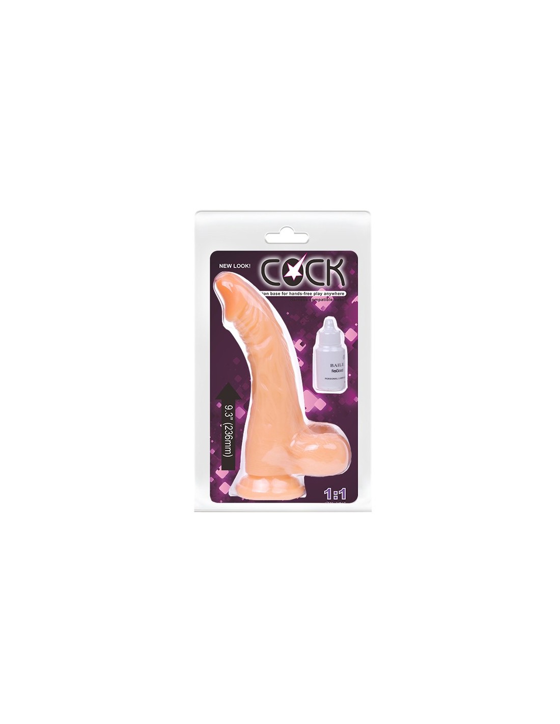 Zawartość opisu produktu: Sztuczny Penis Cock 9,3'', Bendable Suction Base. Producent: Baile. Kolor: w kolorze cielistym. Kod Ean: 6959532307795. Materiał: TPR. Długość: 9,3 cala. Wodoodporny: Tak. Rozmiar opakowania: 330*190*90 mm.
