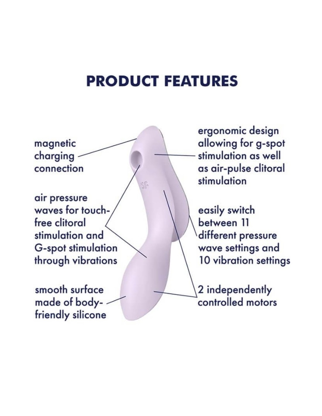 Curvy Trinity 2 oferuje niezwykłą różnorodność i możliwość dopasowania do Twoich preferencji. Dzięki dwóm oddzielnie sterowanym funkcjom, możesz wybierać spośród 11 programów fal ciśnienia i 12 programów wibracji. Odkryj nowe poziomy przyjemności i eksperymentuj z różnymi ustawieniami, dopasowując wibracje do swoich potrzeb.