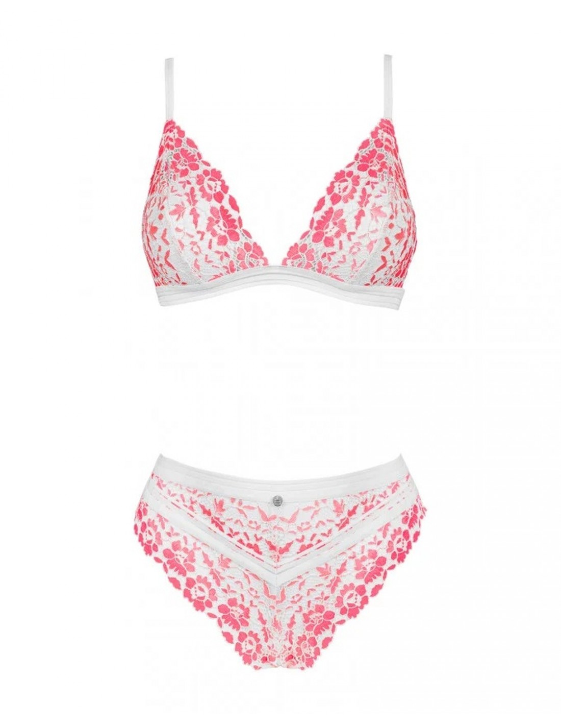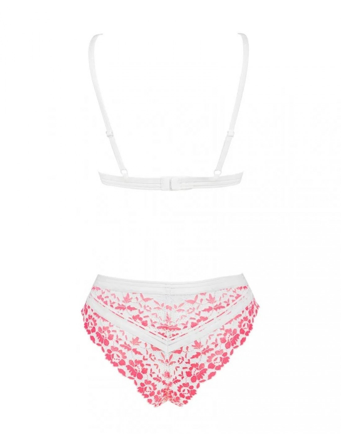 Komplet bielizny erotycznej Bloomys to połączenie wyjątkowej elegancji, wygody i atrakcyjnego wyglądu. Delikatny odcień bladego różu, koronka o kwiatowym wzorze oraz trójkątne miseczki stanika to tylko niektóre z cech, które sprawiają, że nasz produkt jest niezwykle atrakcyjny dla kobiet szukających czegoś wyjątkowego. Nie zwlekaj, zamów teraz i poczuj się piękna i uwodzicielska każdego dnia!