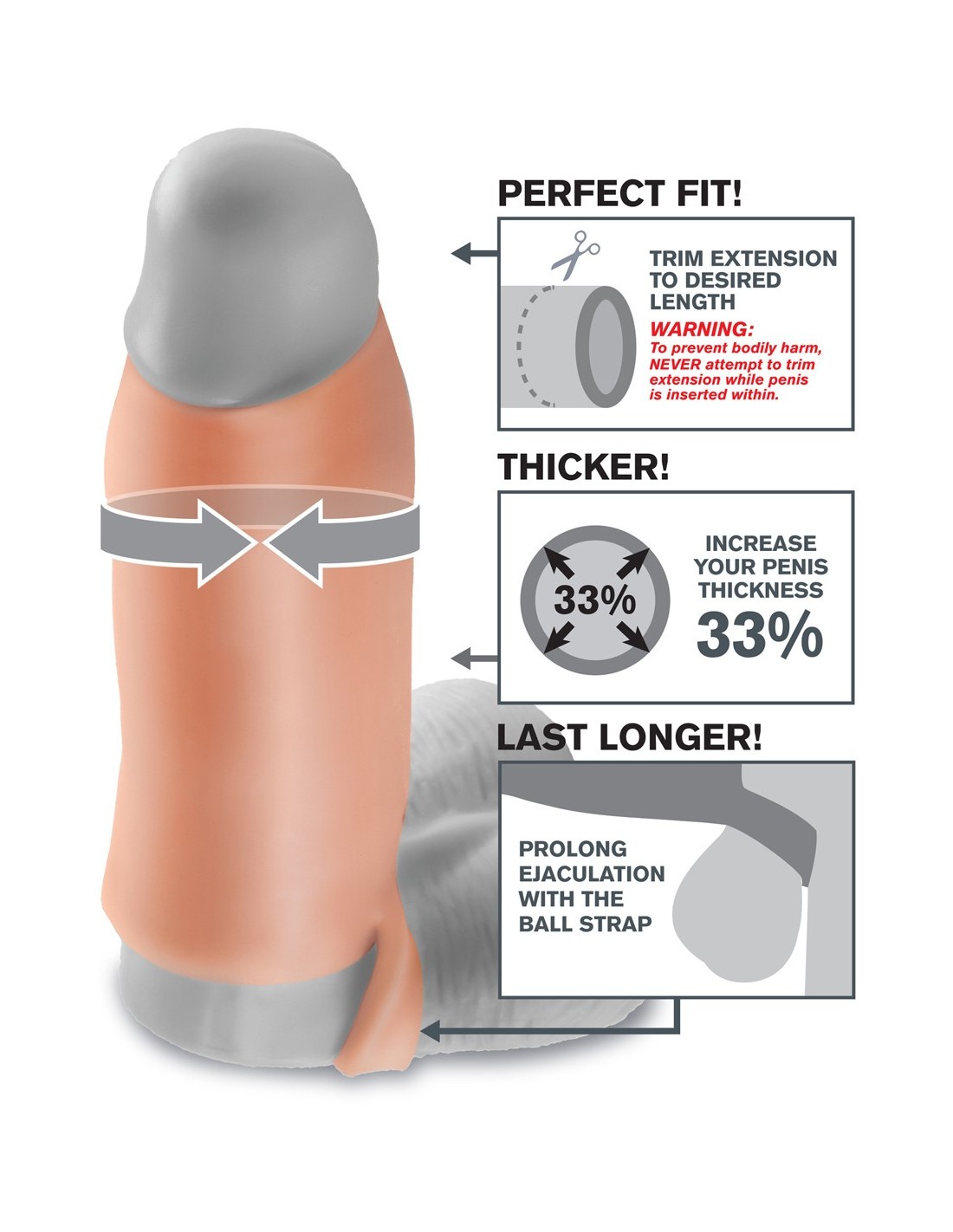 Pogrubić i wydłużyć swojego penisa jeszcze nigdy nie było tak proste! Wystarczy wsunąć penisa w Stymulator-FX REAL FEEL ENHANCER XL, aby zwiększyć jego obwód o imponujące 1 cm. Teraz możesz cieszyć się jeszcze bardziej intensywnymi i satysfakcjonującymi doznaniami.