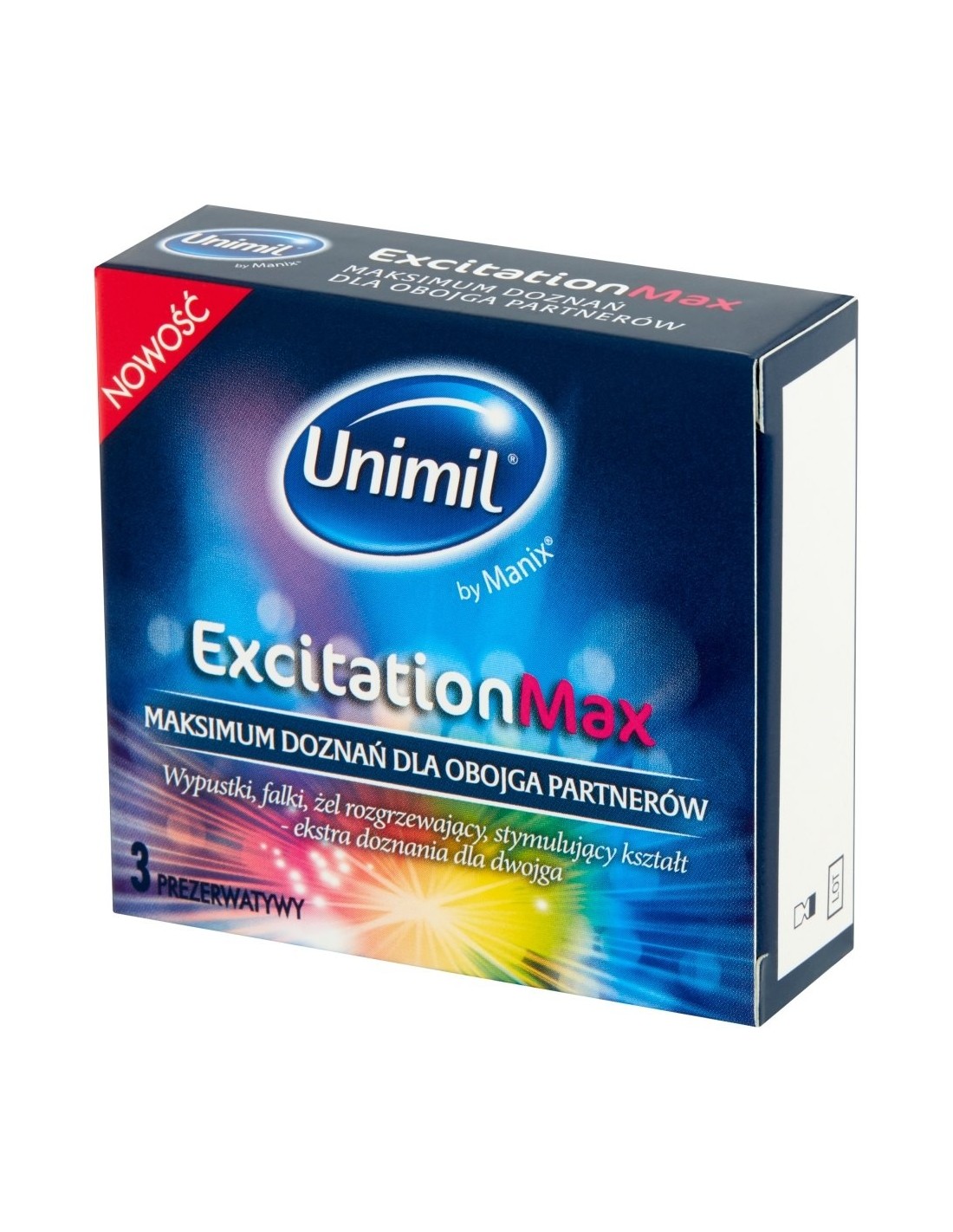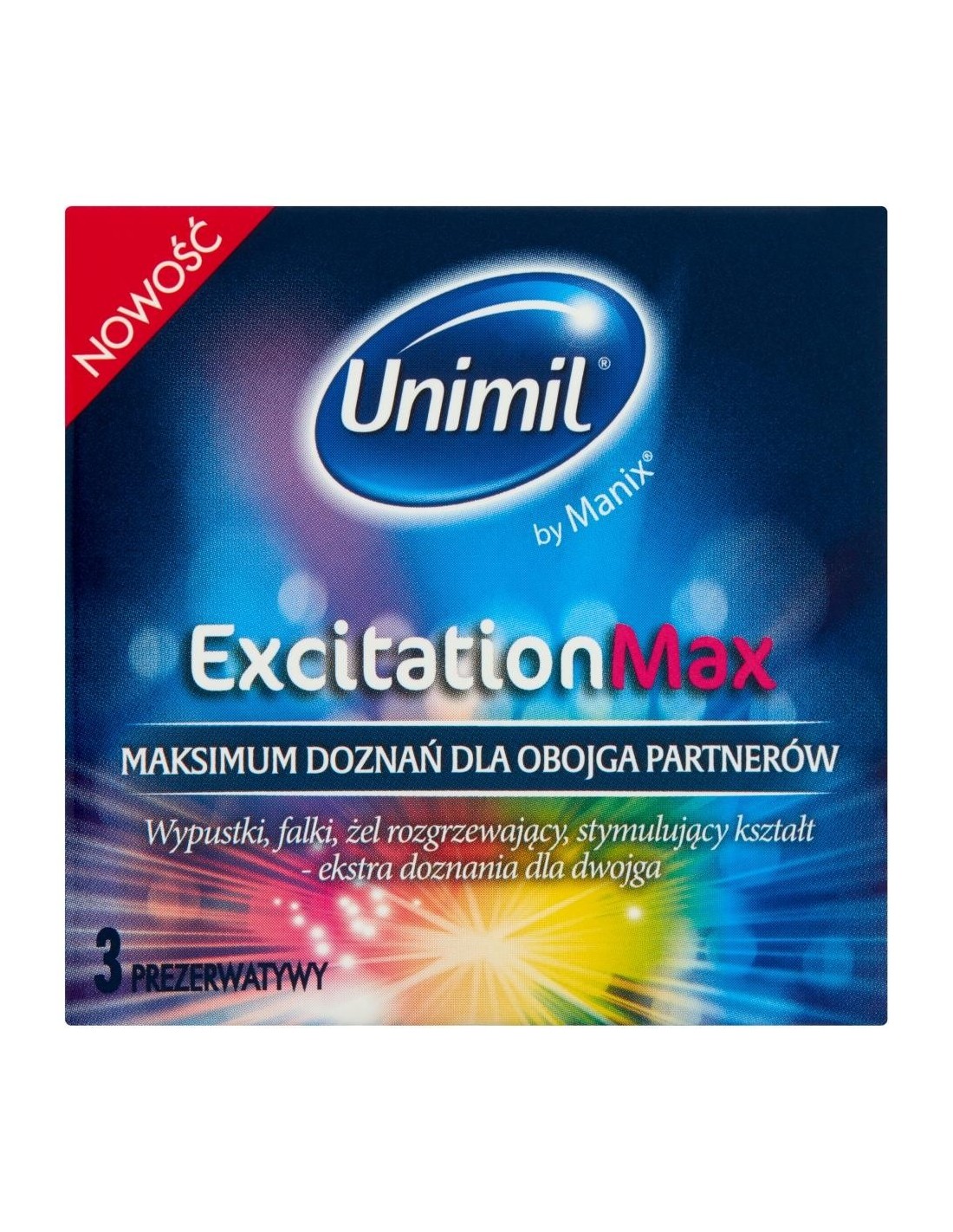 UNIMIL EXCITATION MAX BOX 3 to prezerwatywy, które przeniosą waszą intymność na zupełnie nowy poziom. Dzięki unikalnemu kształtowi i falistym wypustkom w górnej części, każdy dotyk stanie się niezwykle intensywny i ekscytujący. Już nigdy nie będziecie chcieli wrócić do zwykłych prezerwatyw!