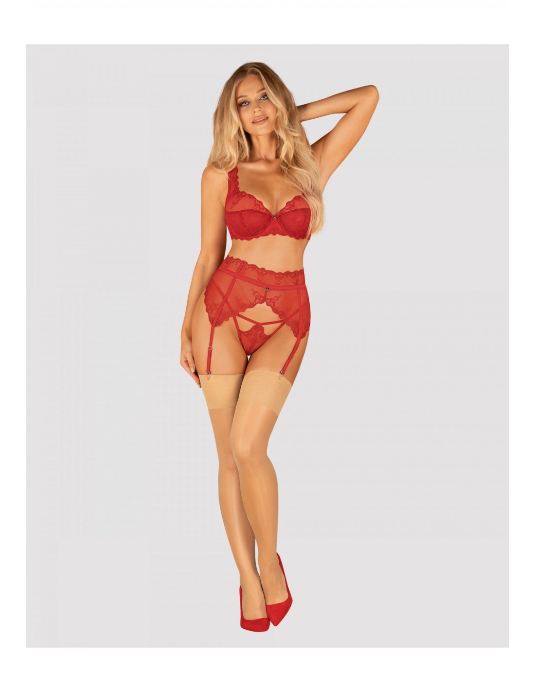 Zaczaruj swojego partnera i podkreśl swoją talię i biodra dzięki wyjątkowemu krojowi tego pasa. Soczysta czerwień i kobiecy fason otulą Twoje ciało seksapilem, a kuszące zdobienia jeszcze mocniej podkręcą atmosferę wieczoru we dwoje.