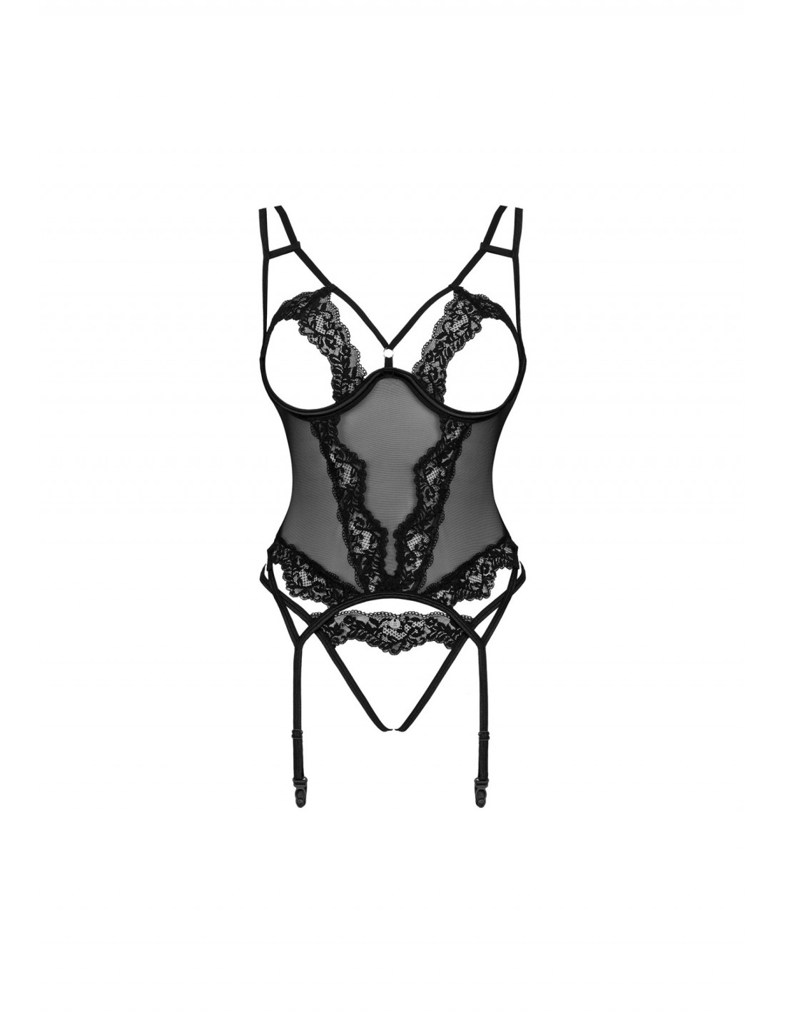 Gorset Setilla to niezwykła bielizna erotyczna, która z pewnością wywoła pożądanie. Jego otwarte miseczki z fiszbinami zapewnią Ci jeszcze więcej kuszących doznań. Dodatkowo, seksowne paseczki na ramionach i dekolcie nadają mu niezwykły wygląd, który intryguje i przyciąga spojrzenia. A to jeszcze nie wszystko!