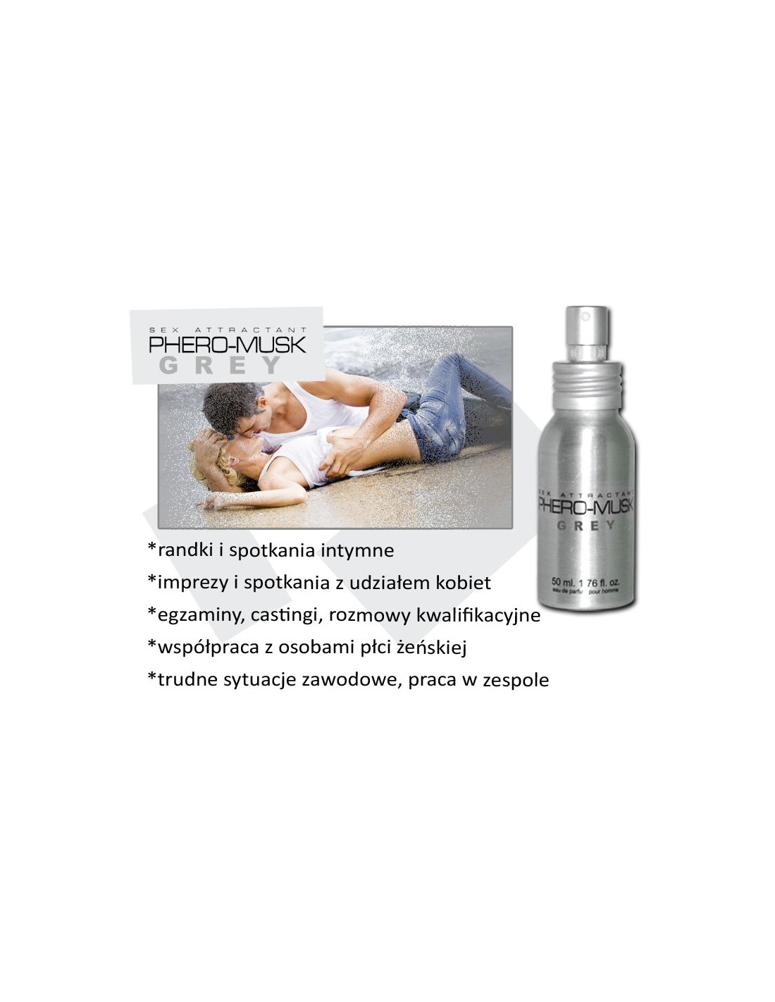 Nie czekaj dłużej - sięgnij po Feromony Phero-Musk Grey 50 ml For Men i odkryj potęgę swojej męskości. Przyciągaj uwagę kobiet i spraw, że będą pragnęły być blisko Ciebie. Wzbudź ich zainteresowanie i zaspokój ich najskrytsze pragnienia. Zamów teraz i poczuj, jak Twoje życie staje się pełne namiętności i przygody!