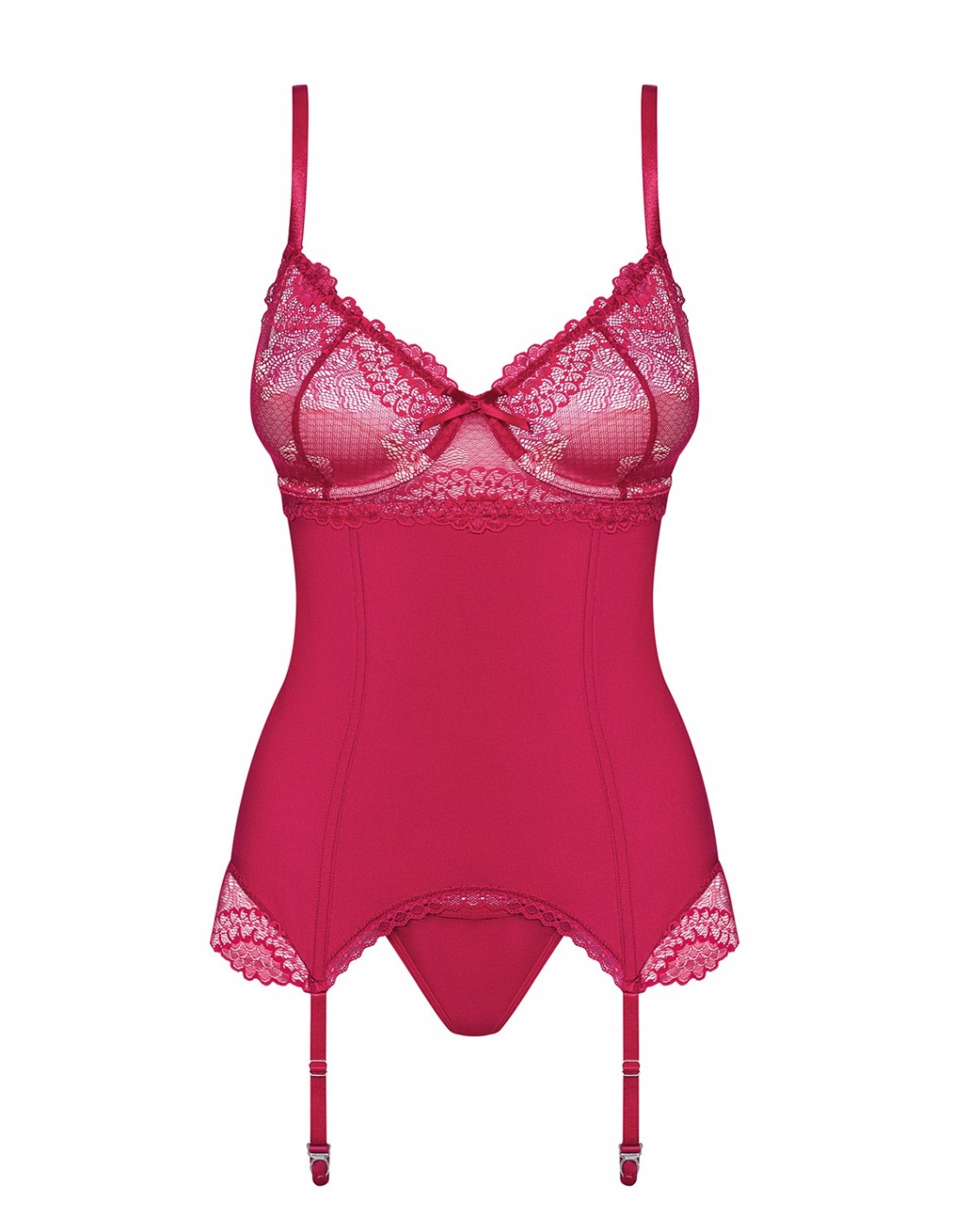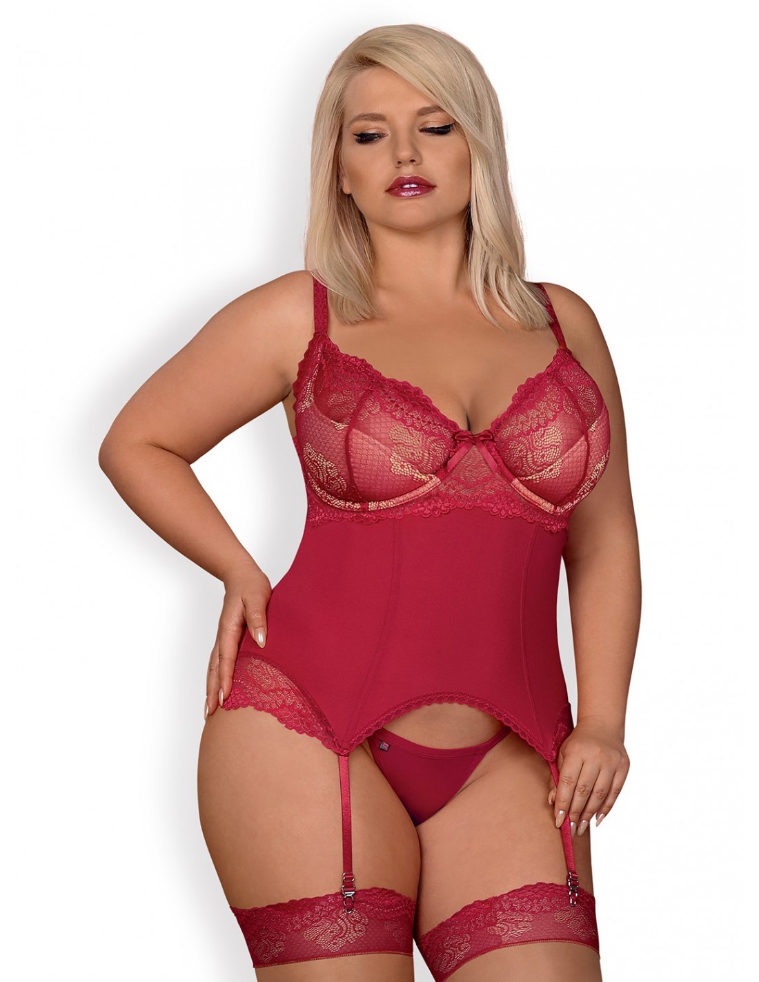 Podkreśl swoją zmysłowość z gorsetem Rosalyne i stringami czerwonymi XXL