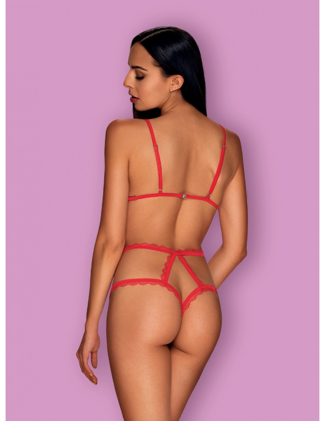 Koronkowe paseczki, które tworzą geometryczną kombinację, idealnie dopasowują się do Twoich kształtów, podkreślając Twoją figurę i dodając Ci pewności siebie. Prześwitująca siateczka dodaje całości figlarności i tajemniczości, sprawiając, że będziesz wyglądać niezwykle uwodzicielsko i kusząco.