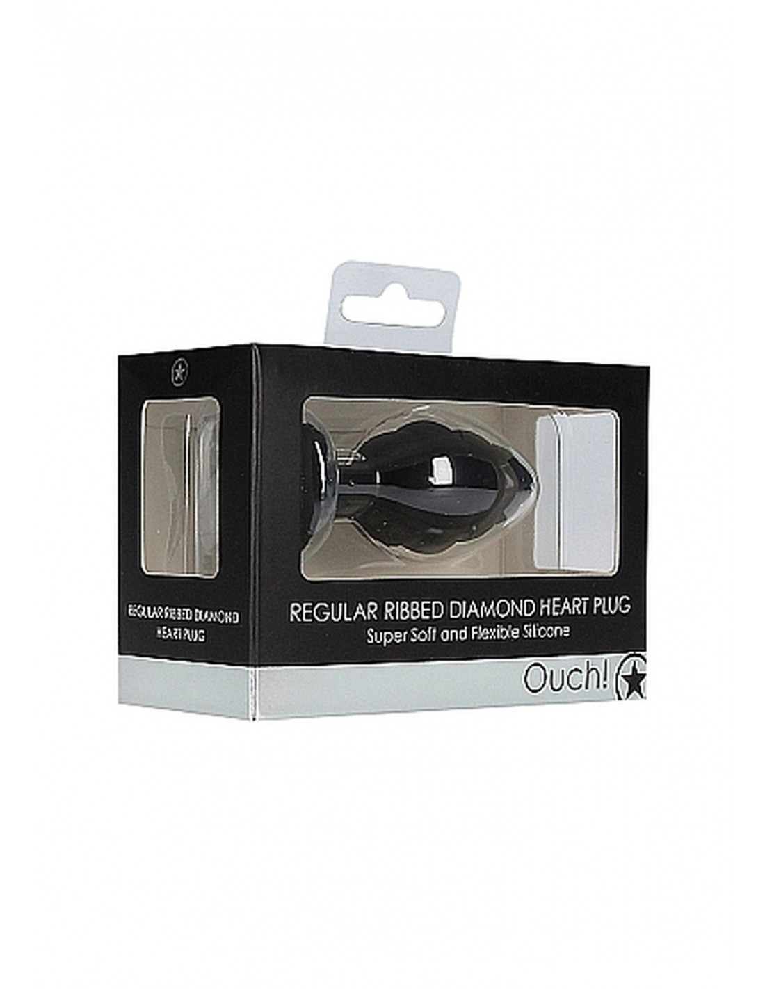 Ouch!Doświadcz intensywnych i satysfakcjonujących doznań z Regular Ribbed Diamond Heart Plug - Black