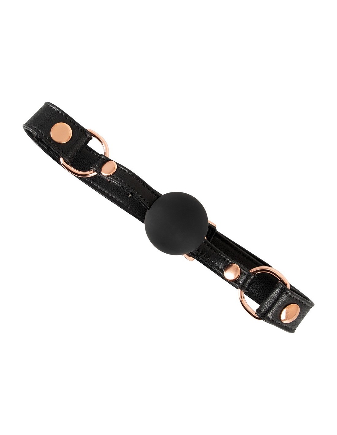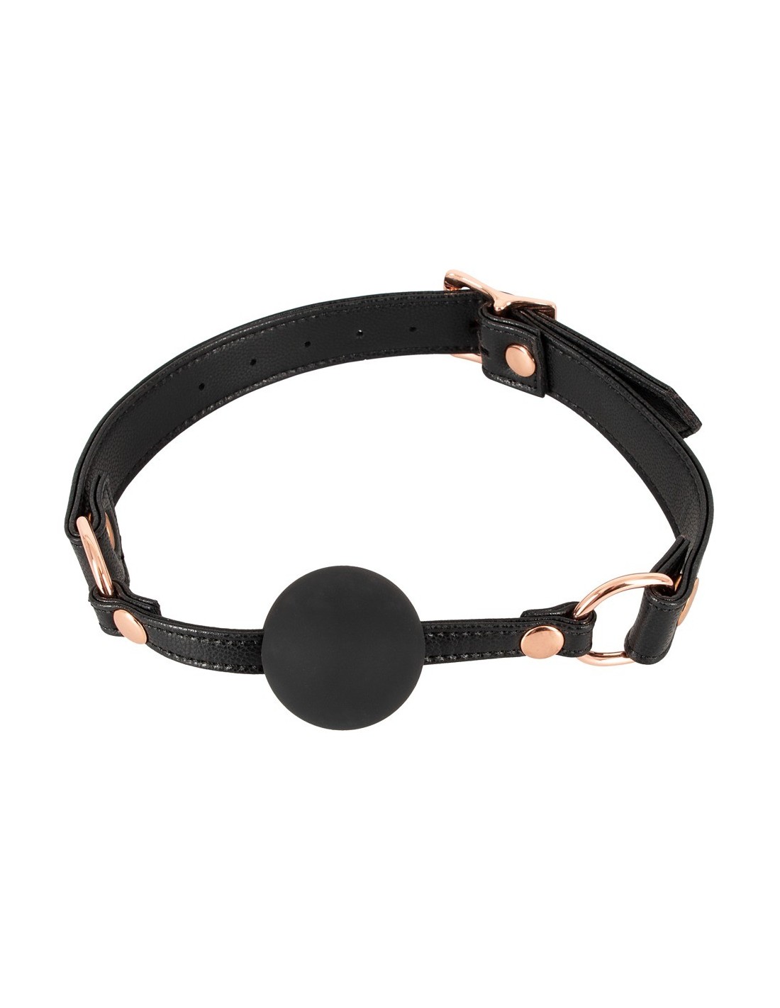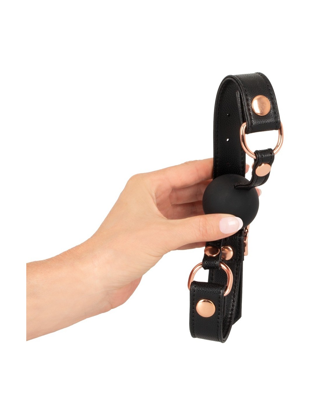 Wewnętrzna strona pasków została wyłożona pluszem, co sprawia, że noszenie knebla jest niezwykle komfortowe. Dodatkowo, dzięki zapięciu na klamrę, paski można łatwo dostosować do rozmiaru głowy, gwarantując idealne dopasowanie i pewność, że gadżet nie będzie się przesuwał podczas zabawy.