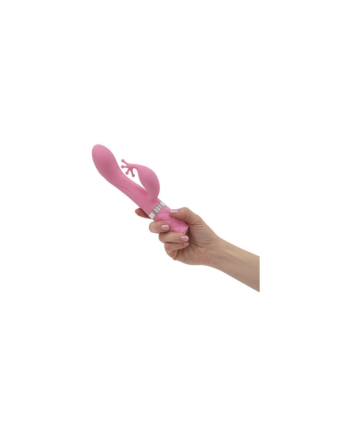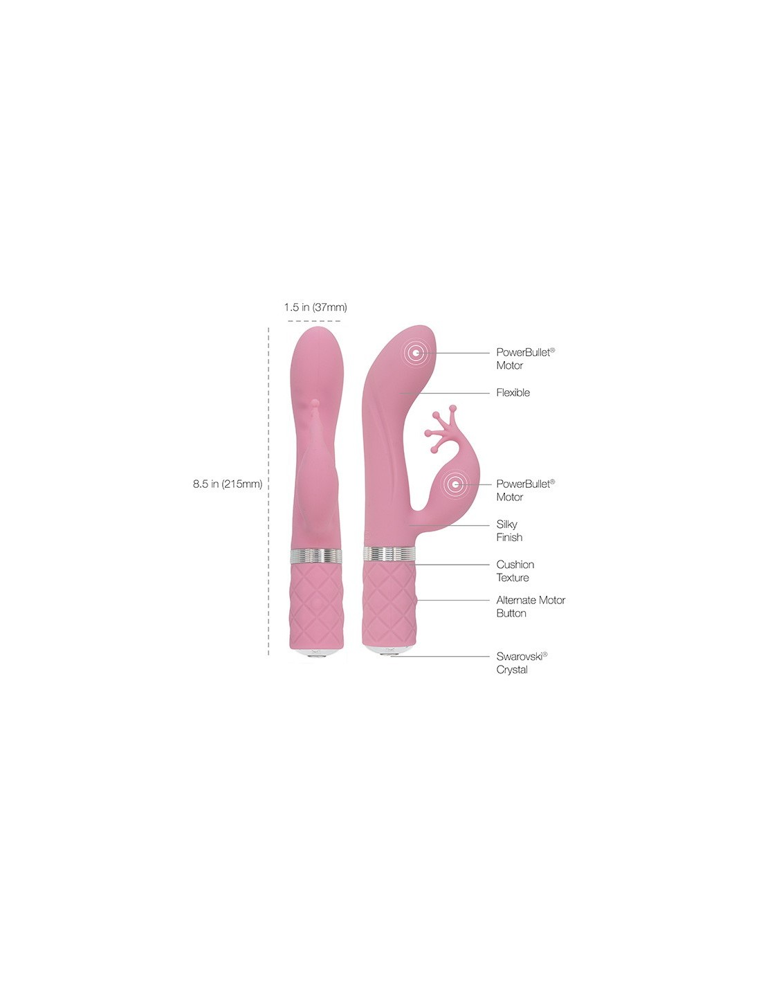 Jego elegancko wygięty korpus, pokryty super jedwabistym, wysokiej jakości silikonem, idealnie celuje w punkt G, podczas gdy zakrzywione ramię łechtaczki działa na najbardziej wrażliwych obszarach. To nie tylko wibrator, to prawdziwa sztuka erotyczna, której miękka faktura uchwytu sprawia, że trzymanie go jest czystą przyjemnością. Dodatkowym elementem luksusu jest kryształ Swarovskiego, który olśniewa tę wyjątkową zabawkę erotyczną.