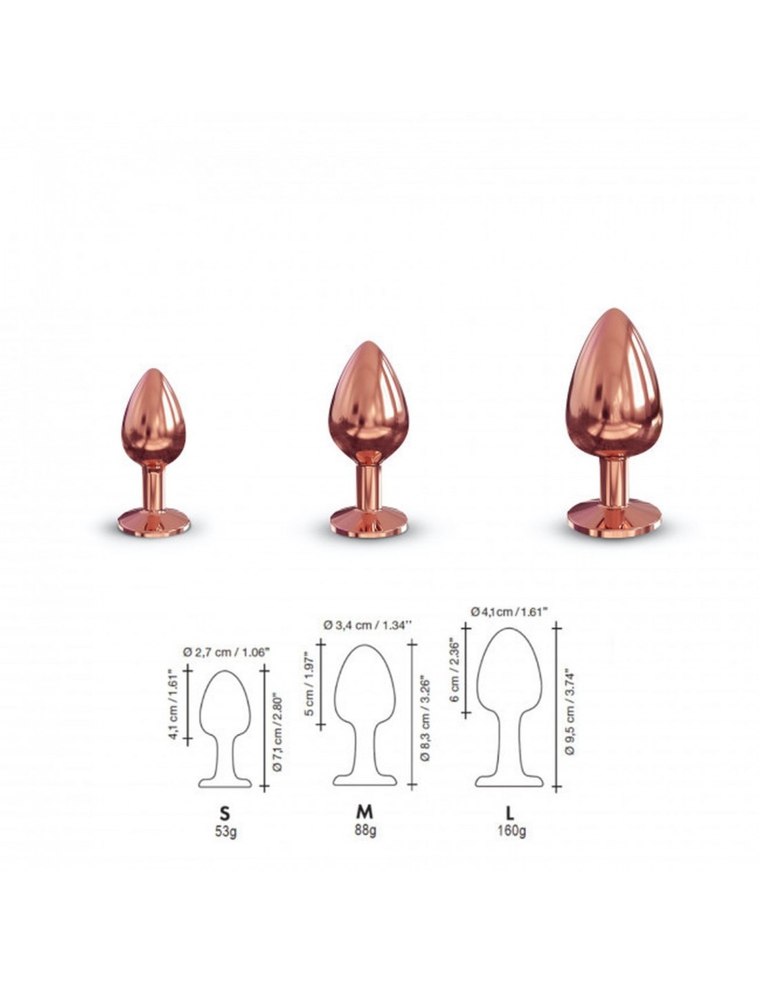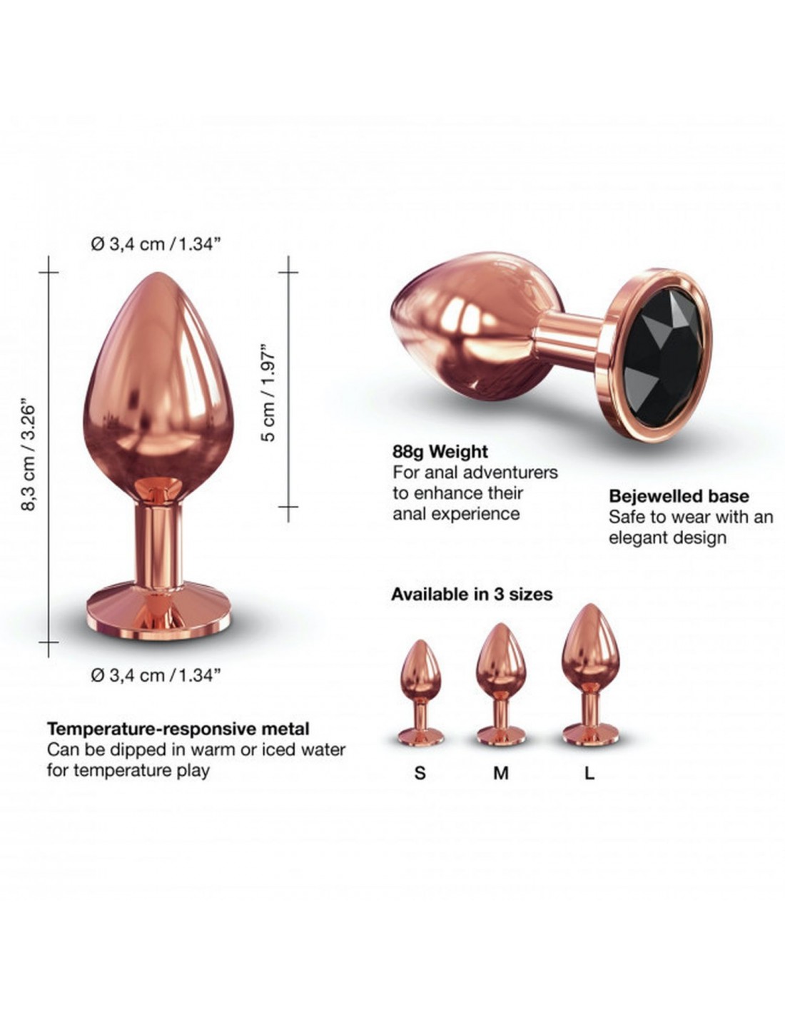 DIAMOND PLUG M to idealny wybór dla osób, które już mają doświadczenie w zabawach analnych. Jego długość całkowita wynosi 8,3 cm, a średnica podstawy to 3,4 cm. Stożek ma długość 5 cm, a jego najszersze miejsce ma średnicę 3,4 cm. Dzięki temu możesz cieszyć się pełnią przyjemności bez obaw.