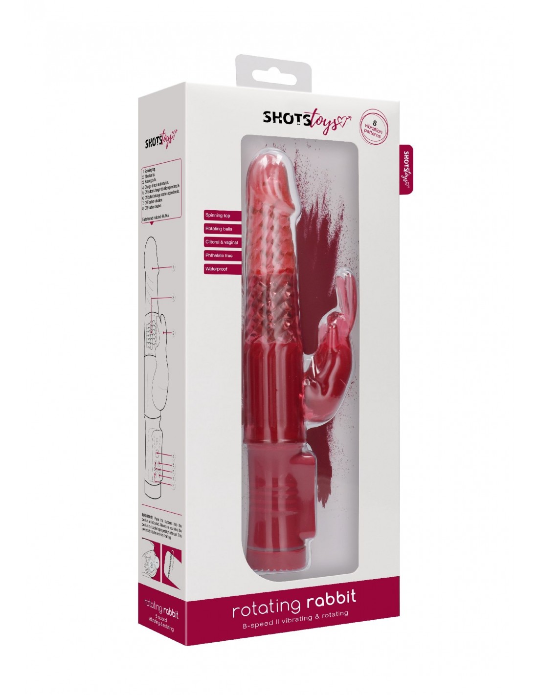 ShotsPrzygotuj się na niezapomniane doznania dzięki naszemu Rotating Wibratorowi Króliczkowi - Czerwonemu! Ten innowacyjny wibrator został stworzony specjalnie dla kobiet, które pragną intensywnej stymulacji łechtaczki i pochwy. Dzięki dwóm potężnym silnikom, które osiągają aż 15 500 obr./min., możesz cieszyć się aż 8 różnymi trybami "zabawy". To niezwykłe urządzenie zapewni Ci niezapomniane orgazmy, które przekraczają granice Twoich wyobrażeń!