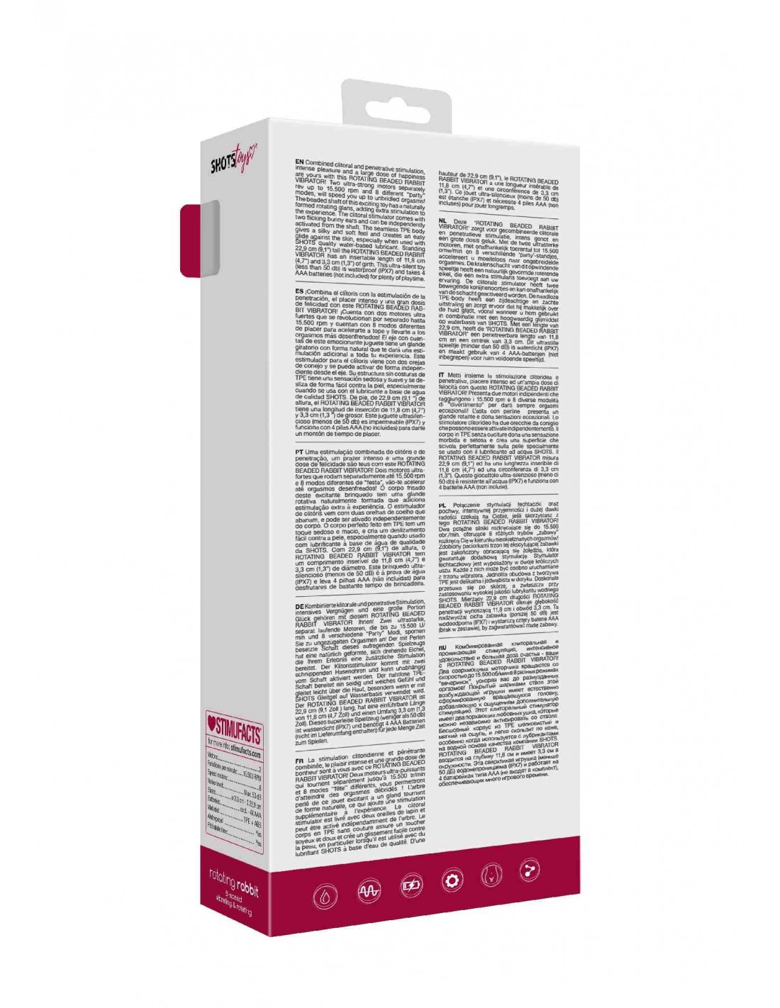 Wyposażony w obracającą się żołędź i paciorki, ten wibrator zapewnia dodatkową stymulację, która sprawi, że Twoje ciało drży z przyjemności. Stymulator łechtaczkowy z dwoma króliczymi uszami umożliwia niezależne uruchamianie każdego z nich, zapewniając jeszcze większą przyjemność. Wykonany z delikatnego i jedwabistego tworzywa TPE, ten wibrator doskonale przesuwa się po Twojej skórze, zapewniając niezrównaną satysfakcję. Aby uzyskać jeszcze lepsze efekty, zalecamy stosowanie wysokiej jakości lubrykantu wodnego SHOTS.