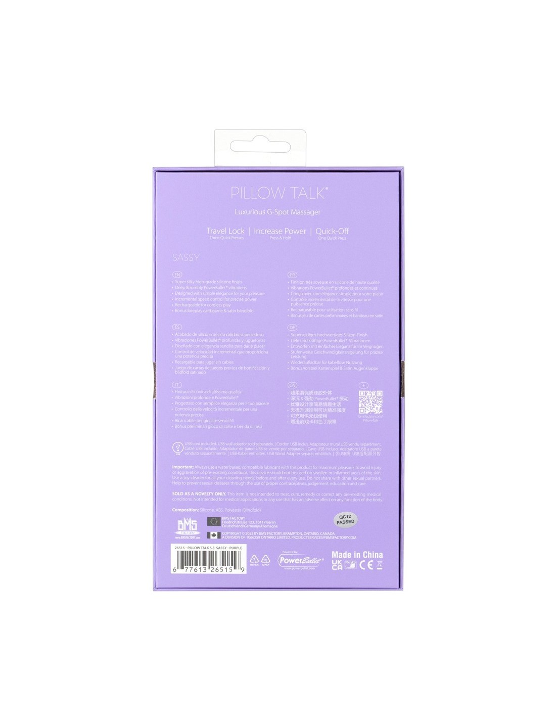 Dodatkowo, Sassy Special Edit posiada funkcję Press & Hold, która pozwala zwiększyć moc wibracji, oraz funkcję Quick-Off, która natychmiast je wyłącza. Dzięki praktycznej blokadzie podróży możesz zabrać go ze sobą wszędzie, nie martwiąc się o przypadkowe włączenie.