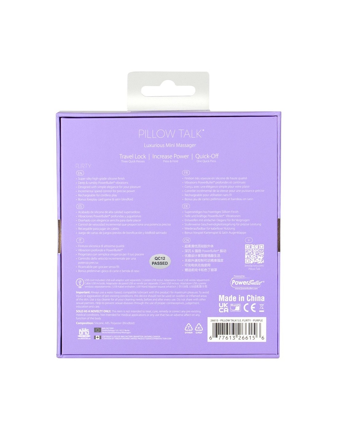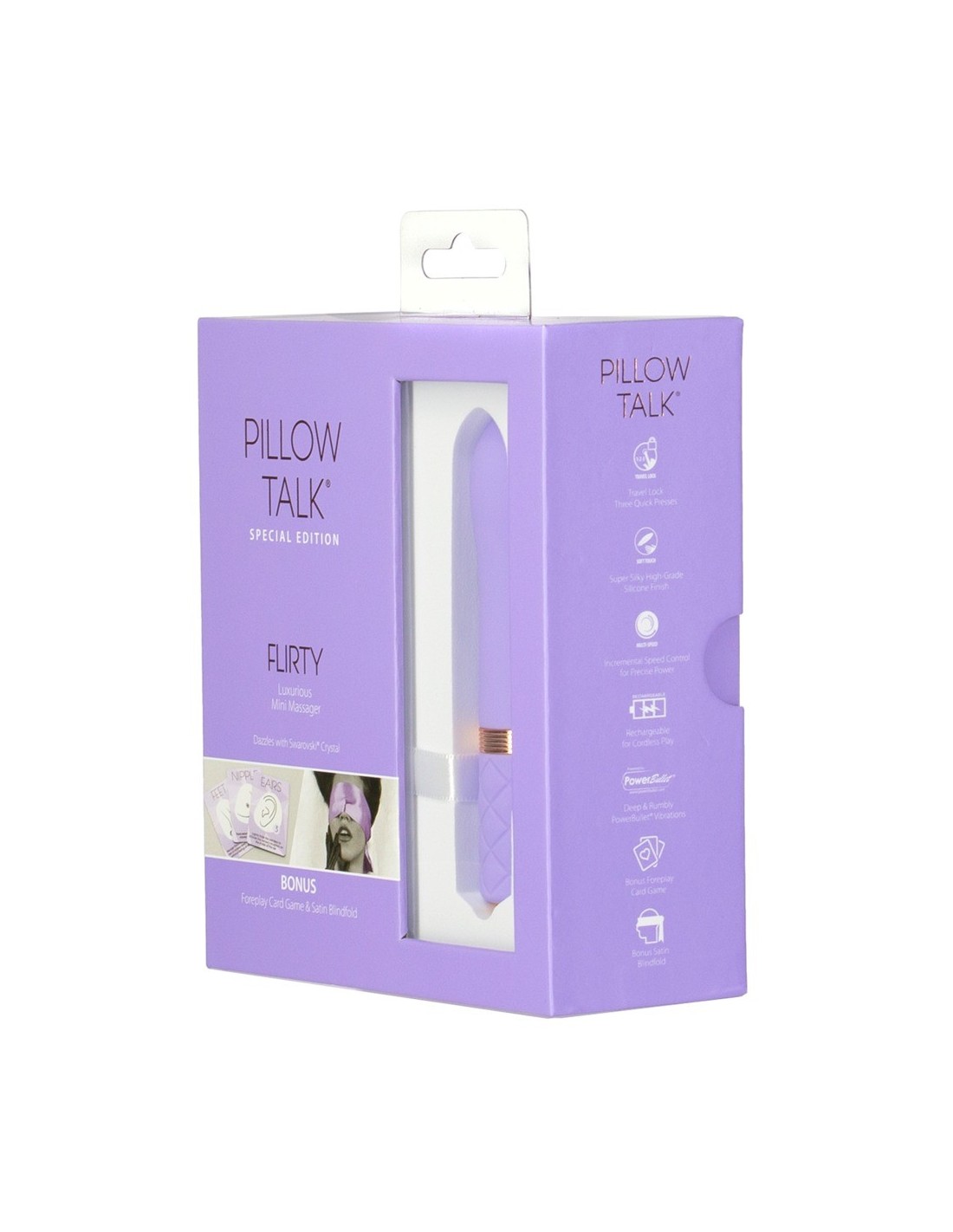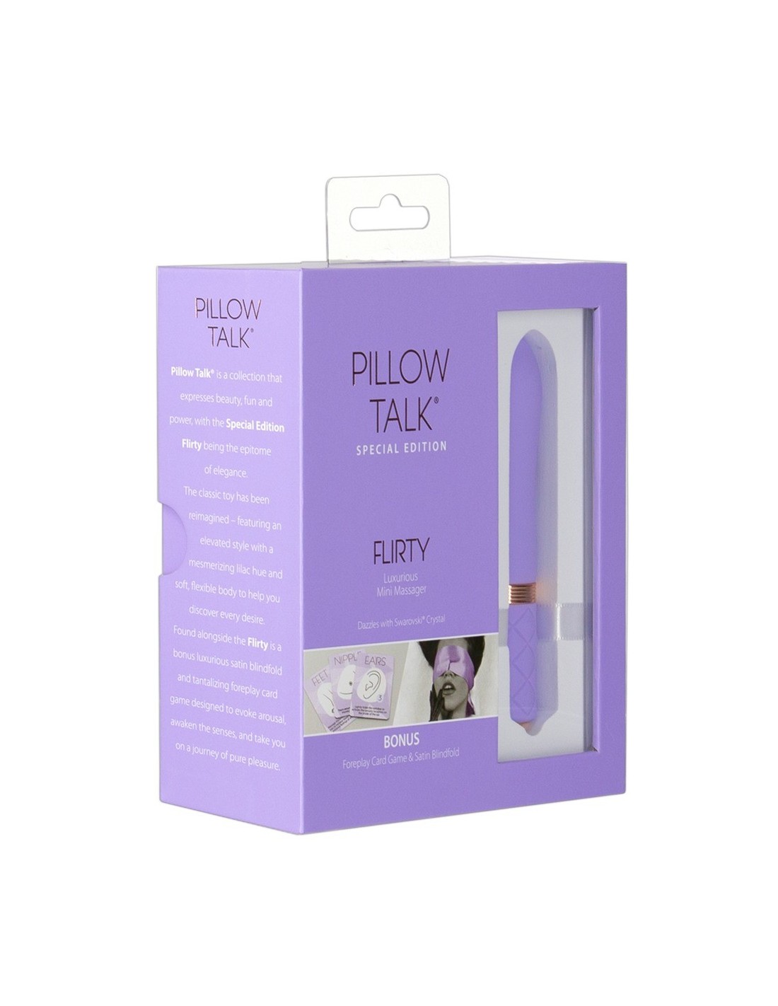 Przedstawiamy Ci specjalną edycję Flirty od Pillow Talk, która pozwoli Ci na odkrycie nowych poziomów rozkoszy. Ta uwodzicielska gra karciana dla par dostarcza inspiracji do gry wstępnej, a wysokiej jakości satynowy szalik dodaje odrobinę pikanterii do Twoich intymnych chwil. Szalik może być używany jako opaska na oczy, aby zaostrzyć zmysły, lub jako ograniczniki, które dodadzą nutki erotyzmu.