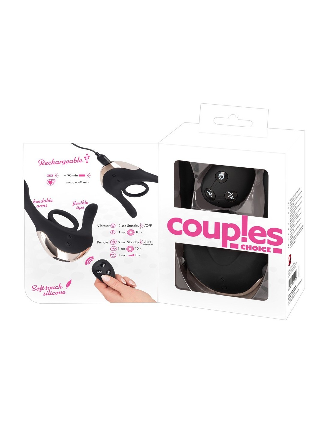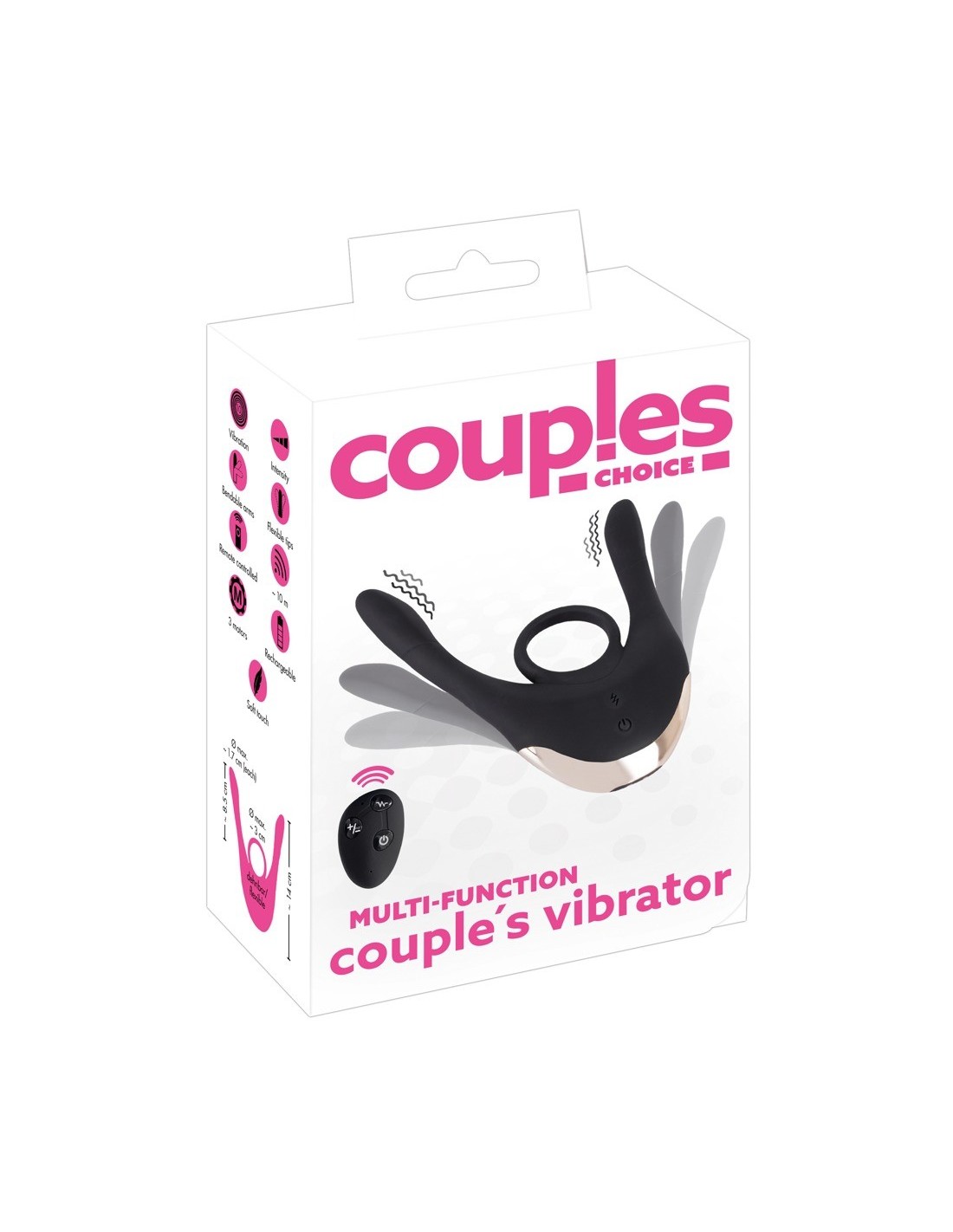 Couples ChoiceWibrator wielofunkcyjny wibrator pary od Couples Choice ma pierścień (kogut) i ruchome ramiona wibro.. 3 silniki (jeden w środku i jeden w każdym ramieniu) mają 10 trybów wibracji w 3 prędkościach. Tryby i prędkości mogą być sterowane oddzielnie za pomocą pilota (zasięg: 10 metrów) - idealny do kilku gier!