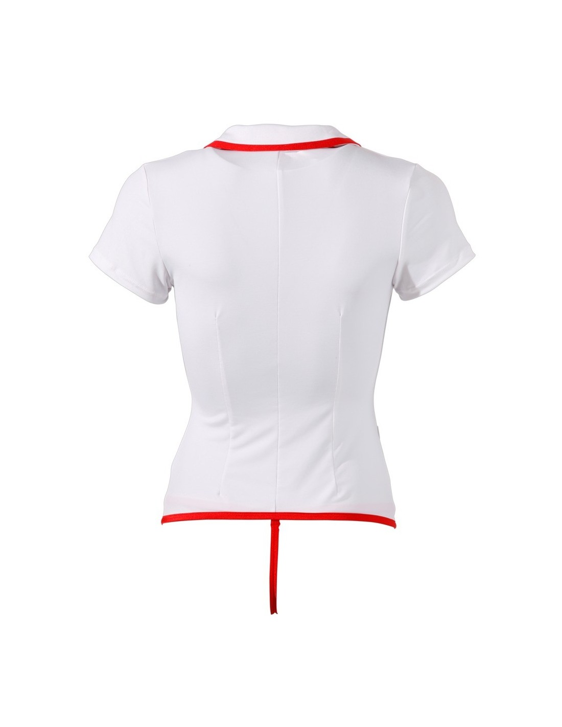 Czy chciałbyś dodać odrobinę pikanterii do swojej sypialni? Nasz kostium pielęgniarki to idealny wybór dla Ciebie! Wykonany z wysokiej jakości materiałów, ten biały gorset z czerwonym wykończeniem zapewni Ci niezapomniany wygląd.