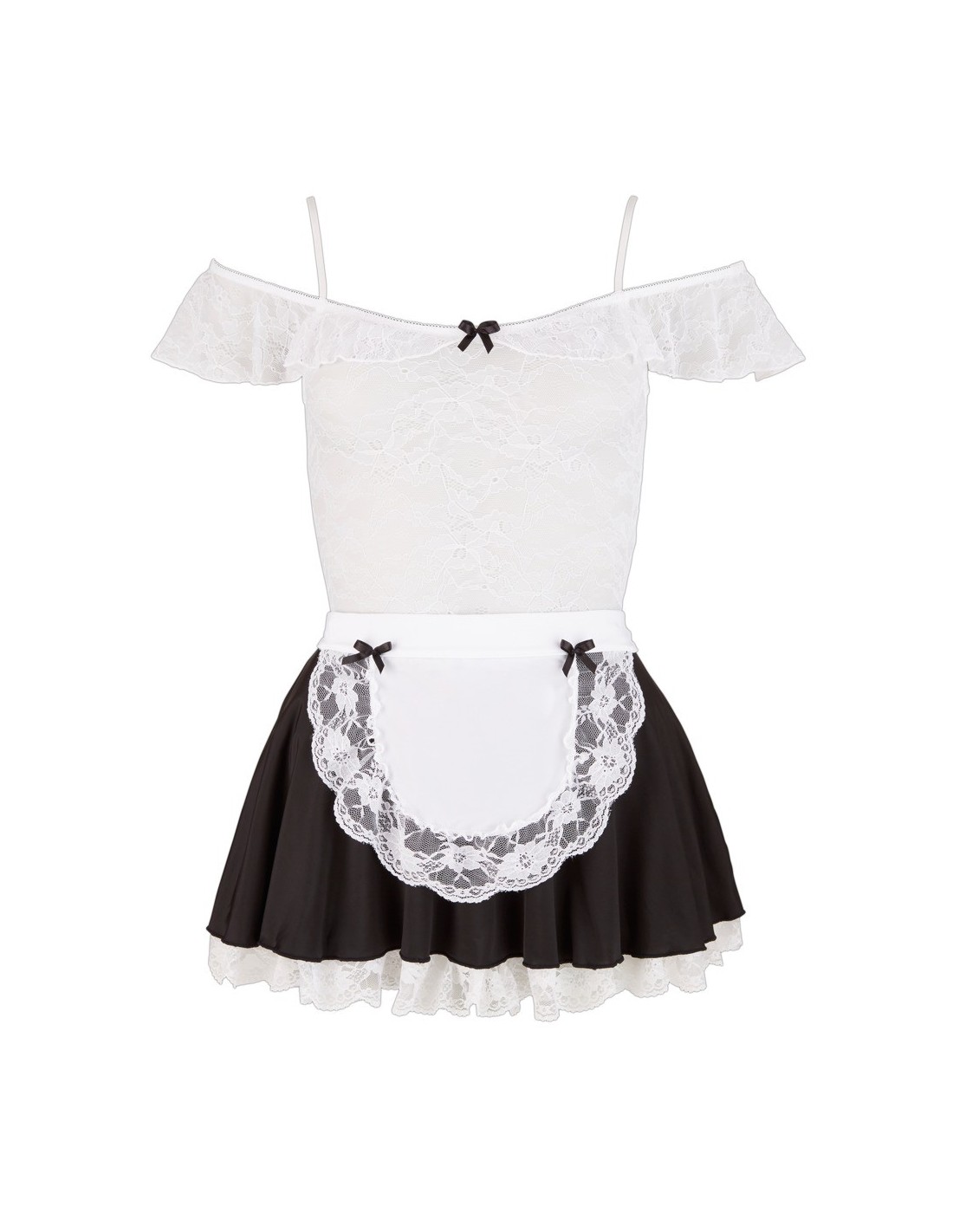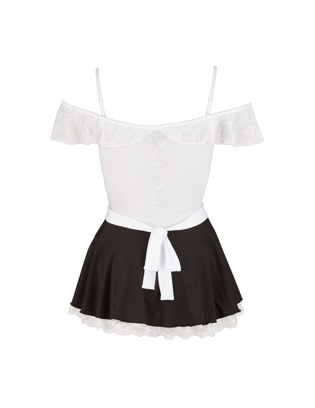 Do sukienki dołączony jest również fartuch, który można zawiązać z tyłu. To dodaje ostatniego szlifu temu seksownemu strojowi. Wykonany z wysokiej jakości materiałów - 95% poliestru i 5% elastanu, koronka z 90% poliamidu i 10% elastanu - zapewnia wygodę noszenia i trwałość.