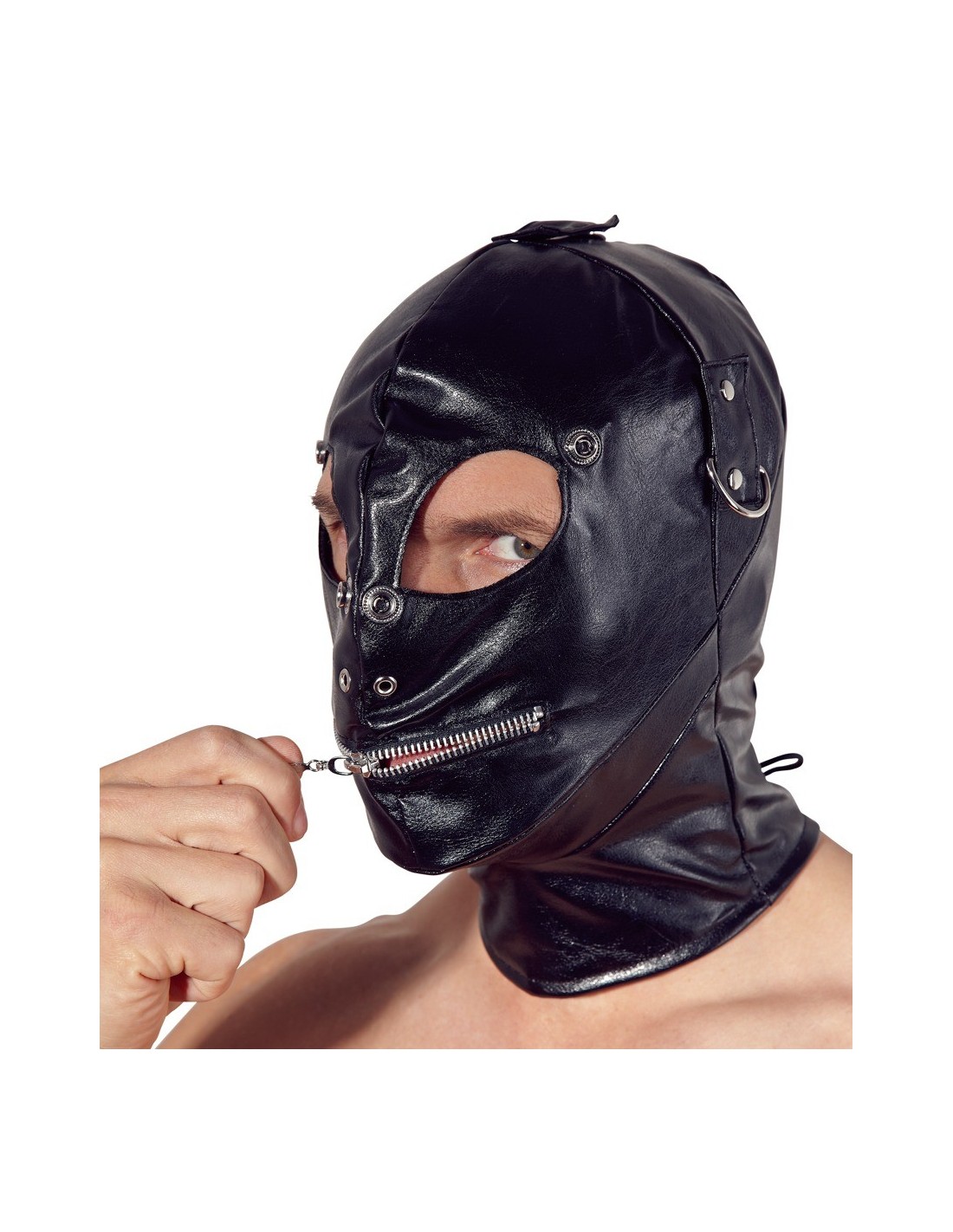 Nasza Maska Imitation Leather Mask to nie tylko funkcjonalny produkt, ale również prawdziwa ozdoba. Na górze i po bokach maski znajdują się ozdobne pierścienie, które dodają jej wyjątkowego charakteru. Bez wątpienia przyciągniesz uwagę swojego partnera i sprawisz, że będzie on pragnął poznać Cię bliżej.