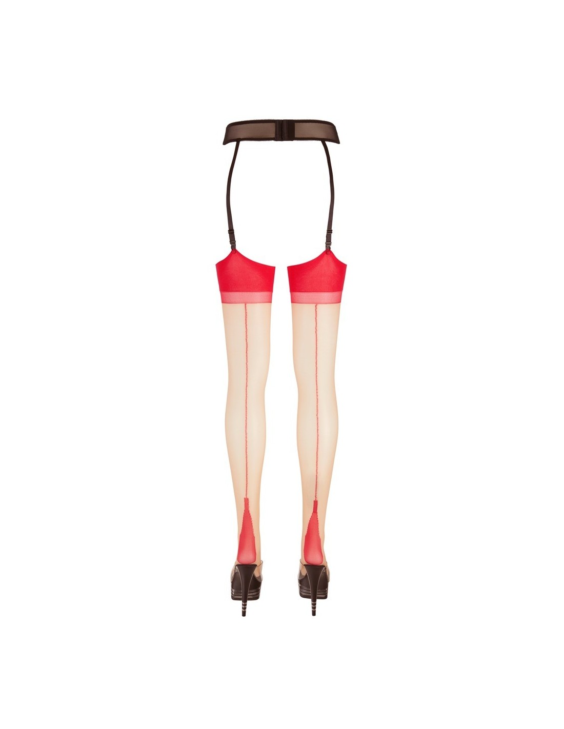 Nasze pończochy skin/red 2 to nie tylko zwykłe pończochy. Ich wyjątkowy design sprawia, że od razu przyciągają uwagę. Miękki materiał wokół górnej części, szew z tyłu i kubańska pięta nadają im niezwykle erotycznego wyglądu. Dodatkowo, są one certyfikowane przez Oeko-Tex, co oznacza, że są bezpieczne dla Twojej skóry.
