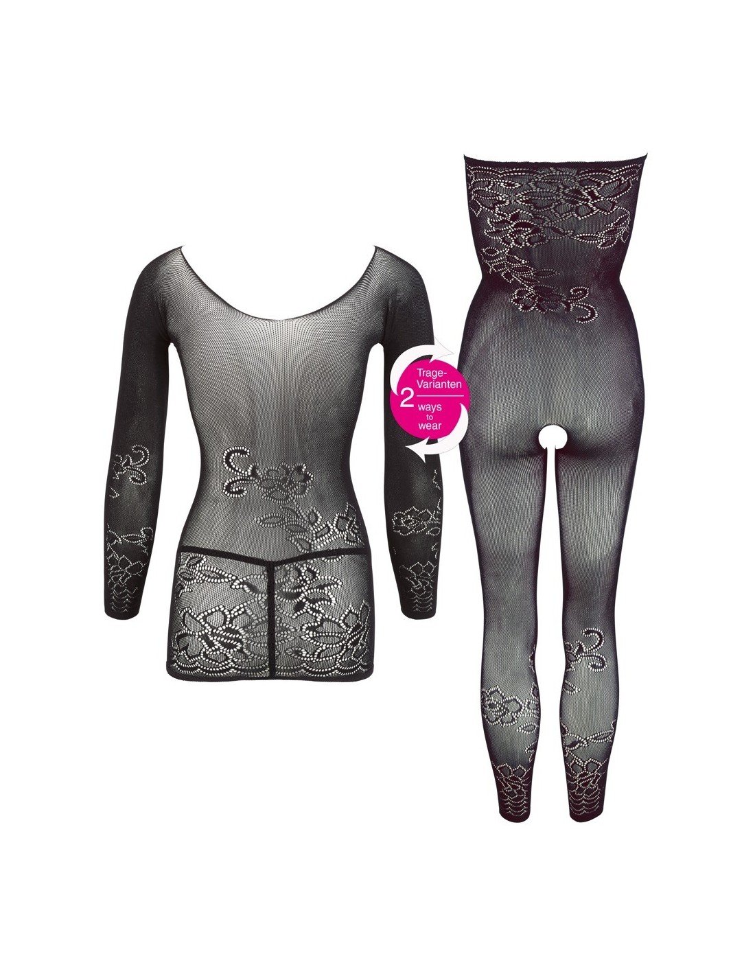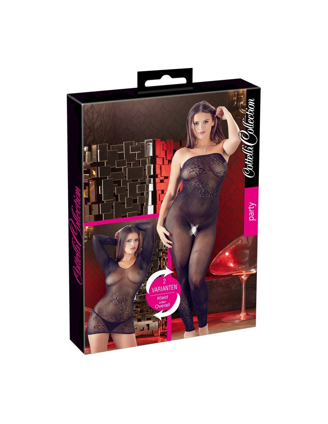 Zaprezentuj swoje najbardziej kuszące kształty w naszej nowej sukience lub kombinezonie Cottelli PARTY. Ten niezwykły strój, wykonany z elastycznej dzianiny, idealnie pasuje na wiele różnych okazji. Możesz go nosić jako kombinezon z odkrytym krokiem i ramiączkami lub jako mini sukienkę z długimi rękawami. Jego półprzezroczysty materiał ozdobiony koronką kwiatową sprawia, że wyglądasz niezwykle seksownie i uwodzicielsko.