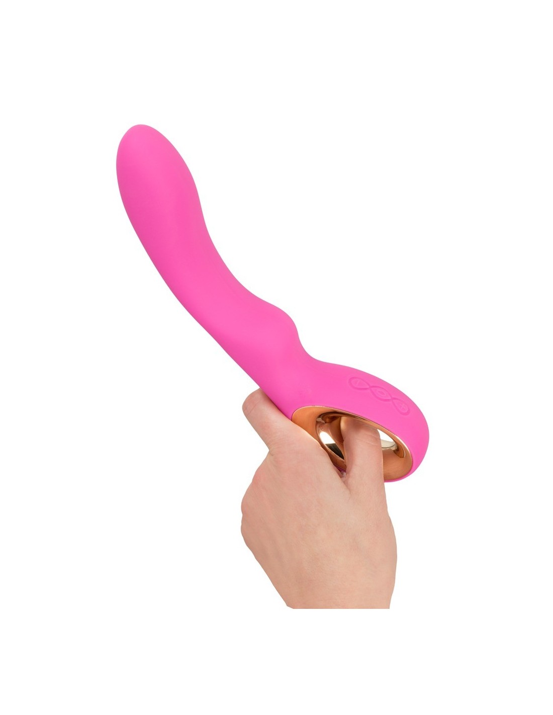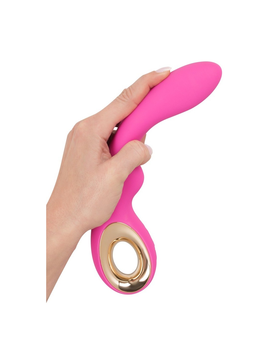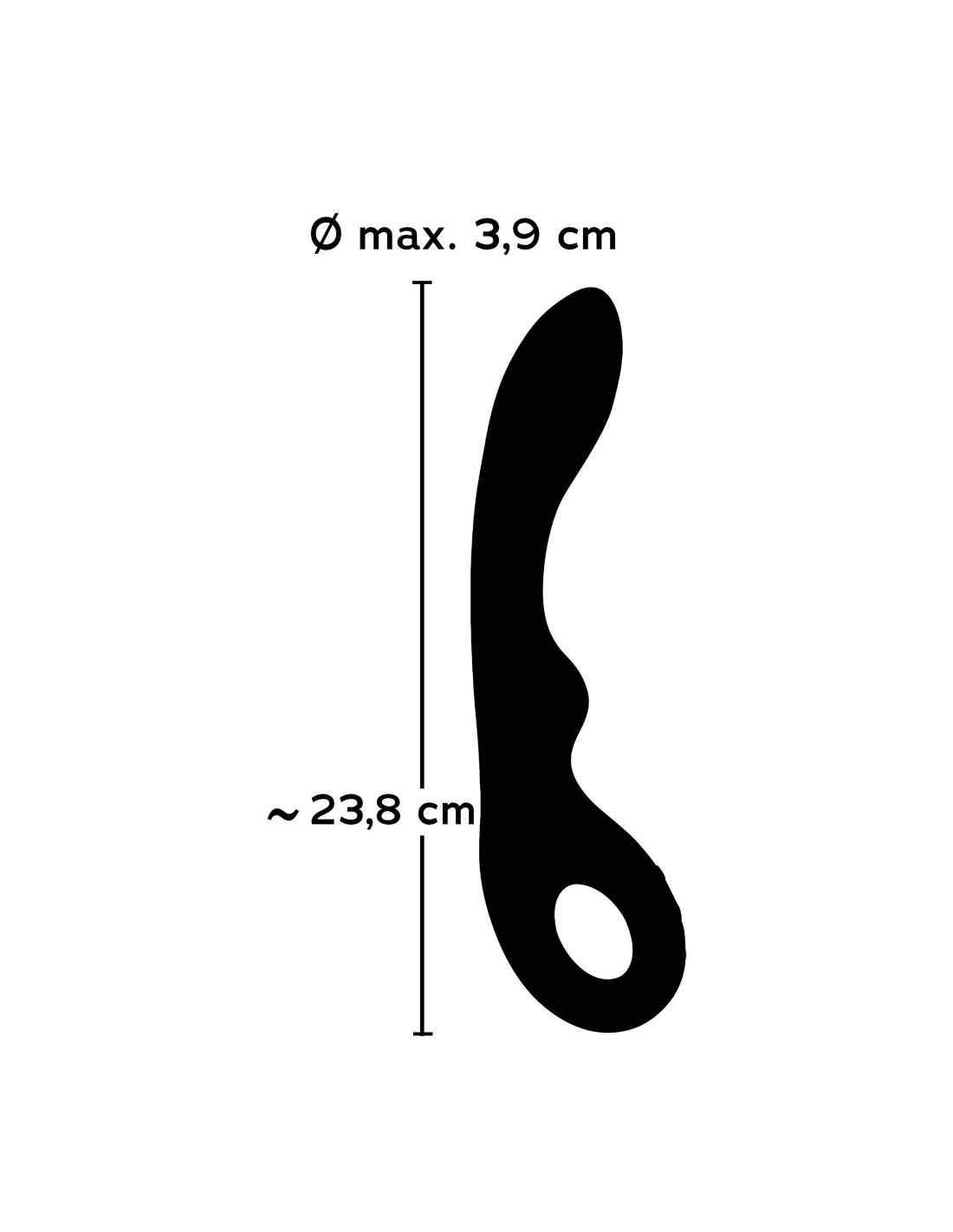 Ten niezwykły wibrator posiada lekko wygiętą konstrukcję, która doskonale dopasowuje się do Twojego ciała. Jego duży, stożkowaty wierzchołek został zaprojektowany specjalnie dla stymulacji punktu G, zapewniając niezapomniane doznania. Na dolnej części trzonu znajduje się wyraźna fala, która zapewnia intensywną stymulację łechtaczki lub odbytu.